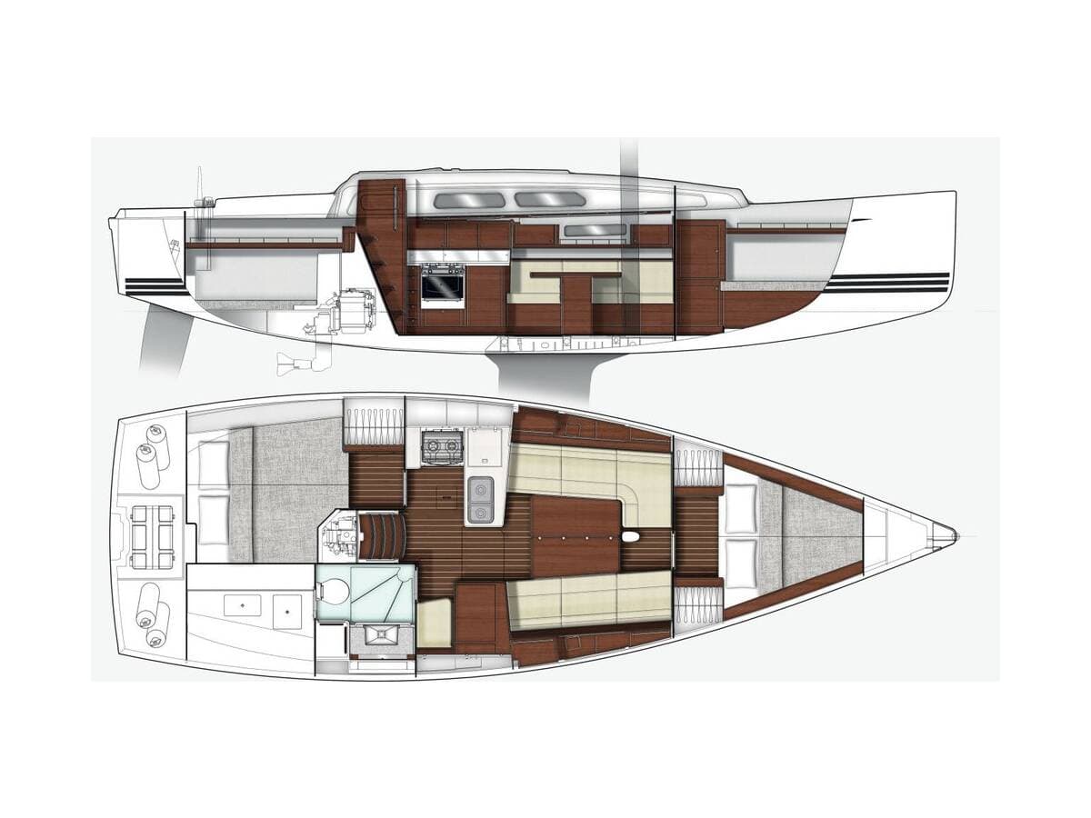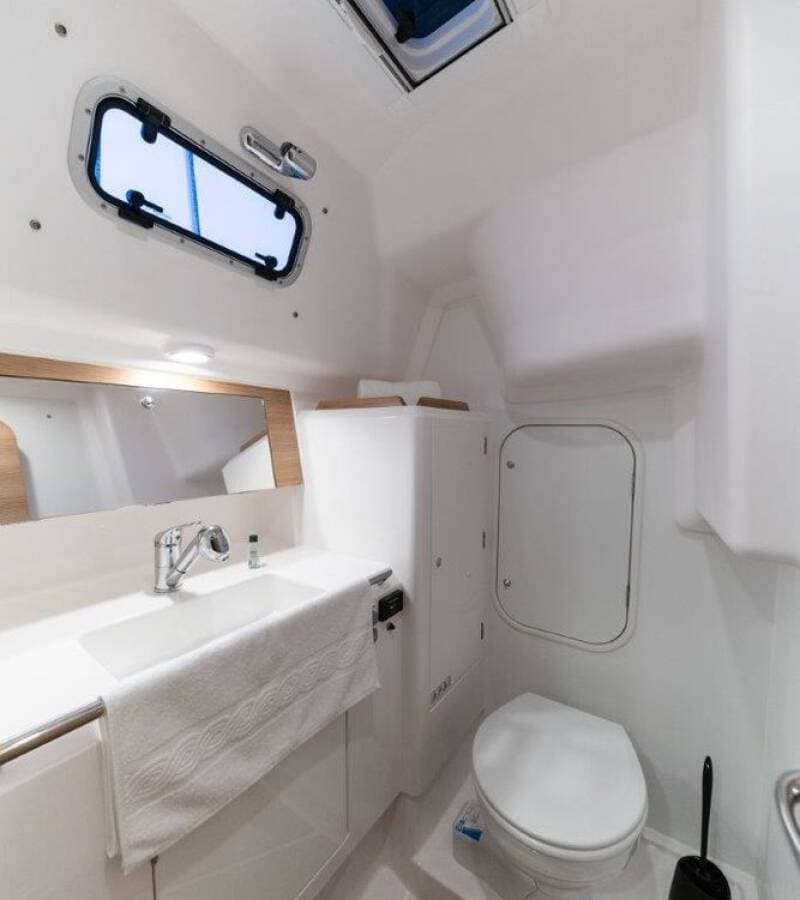 - DeckBilge pump - MechanicBimini topCockpit tableCockpit/stern, outside showerDinghyElectric anchor windlassGangwaySprayhoodTeak cockpit