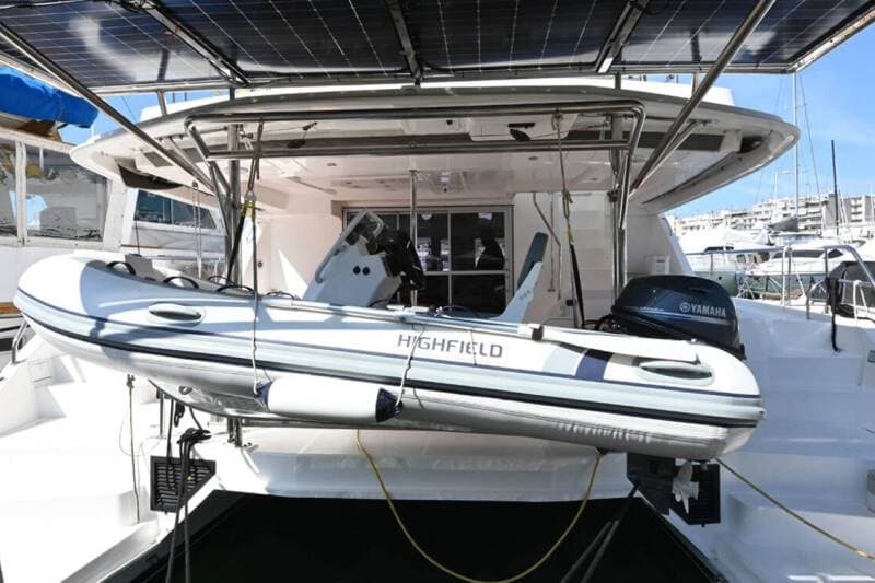 - DeckBathing platformBimini topDinghy with outboard engineGangwayGrill/Barbecue/PlanchaHydraulic lifting swimming platformSprayhood
