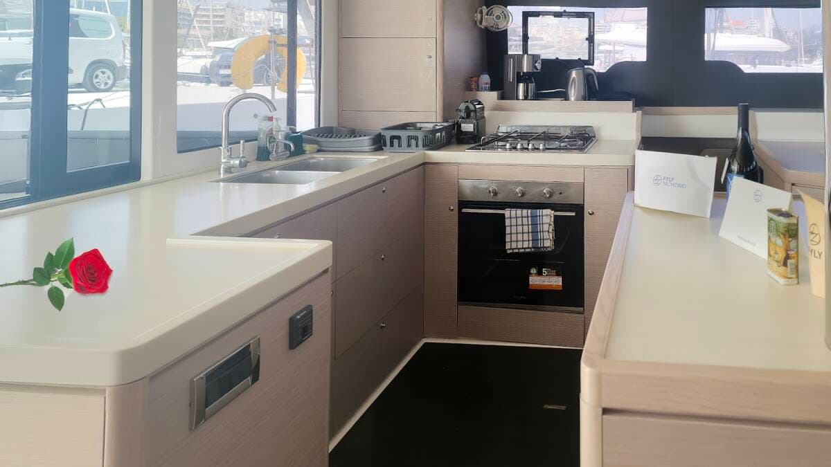 - GalleyFreezerKitchen utensils (Galley equipment, cutlery)NESPRESSO coffee machineRefrigerator