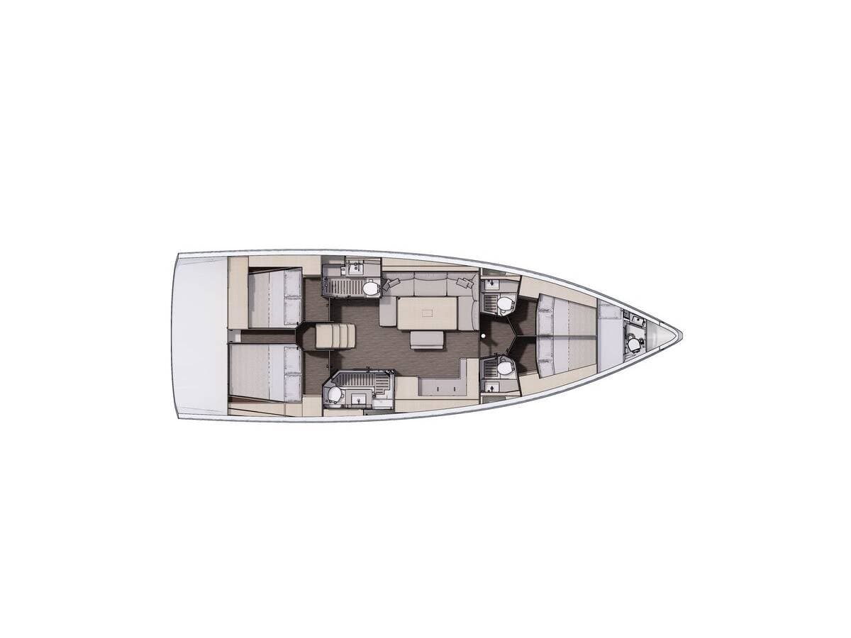 - DeckBathing platformBimini topCockpit tableCockpit/stern, outside showerDinghy Gangway Outboard engine SprayhoodSwimming ladder