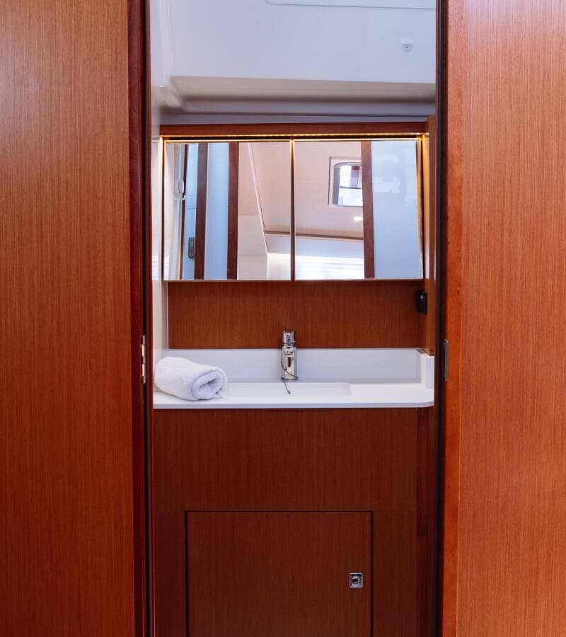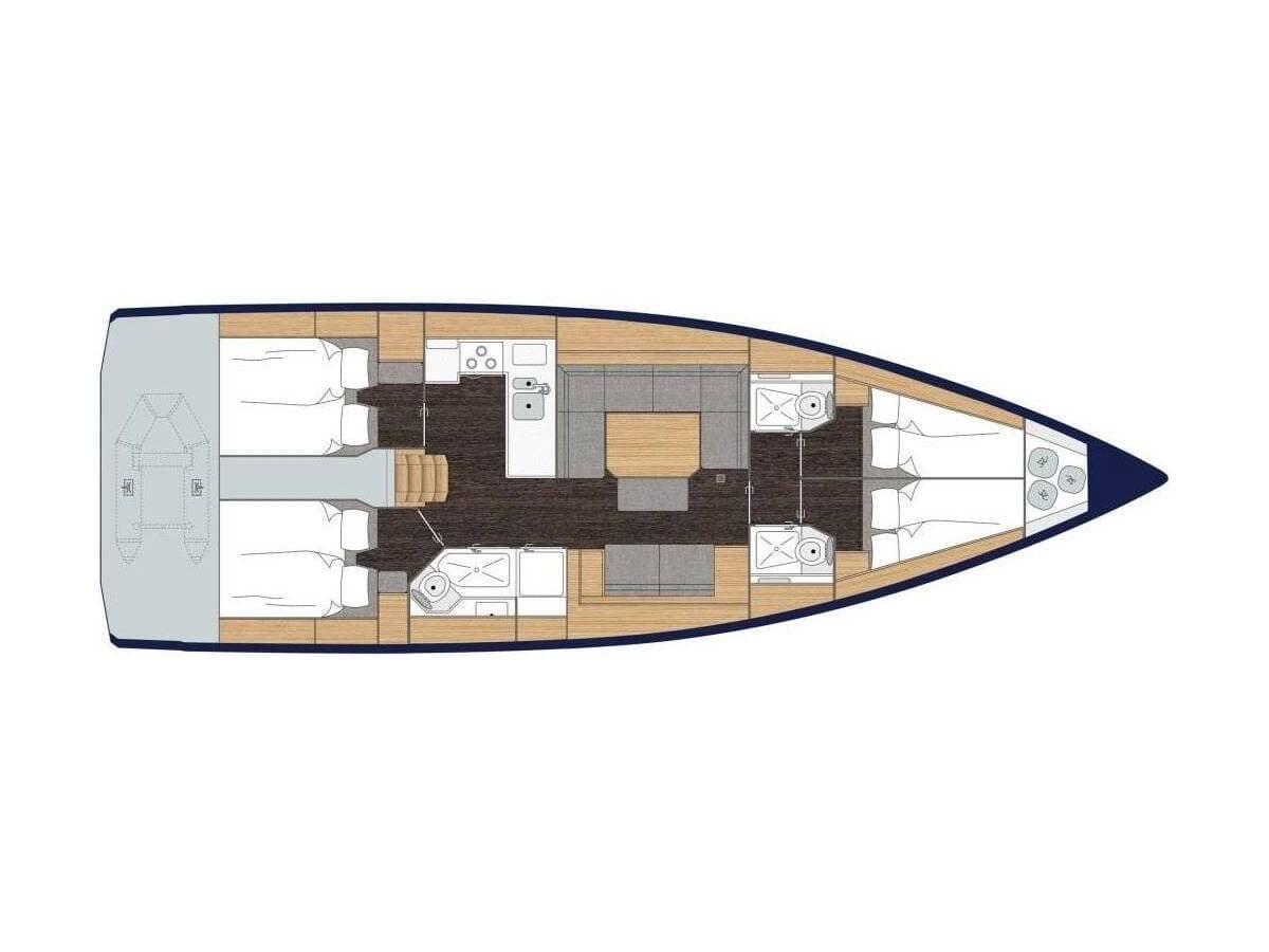 - DeckBathing platformBimini topDinghy with outboard engineGangwaySprayhood