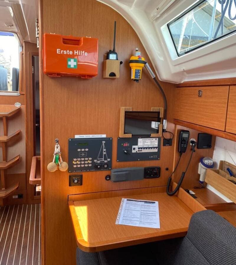 - NavigationAIS Bow thrusterComposite steering wheelsGPSGPS chart plotter GPS chart plotter - cockpit Hand bearing compassHarbour guidesLogge/Lot/Speed/WindNavigation (Nautical) charts and nautical guide Navigation setParallel rulerRadar Radar reflectorSpyglass with bearing compass Tridata Windex