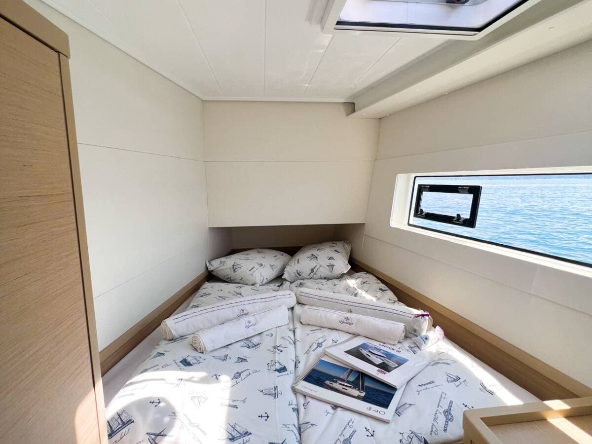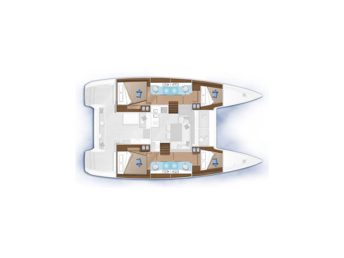 - DeckAnchor with chain Cockpit tableCockpit/stern, outside showerDeck lightsDinghyElectric anchor windlassFendersGangwayMooring ropes Outboard engine