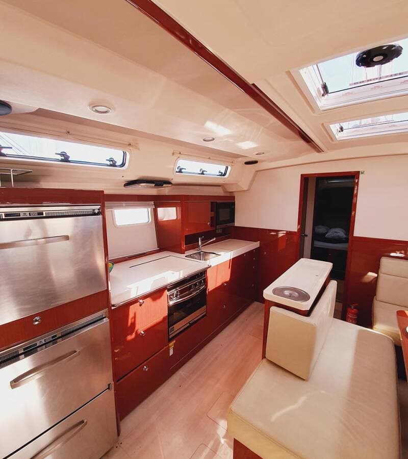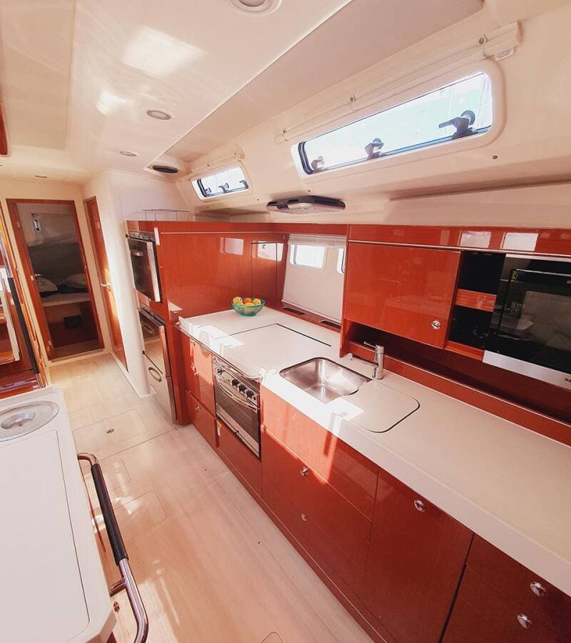 - GalleyGas bottlesHot water Kitchen utensils (Galley equipment, cutlery)Microwave Refrigerator