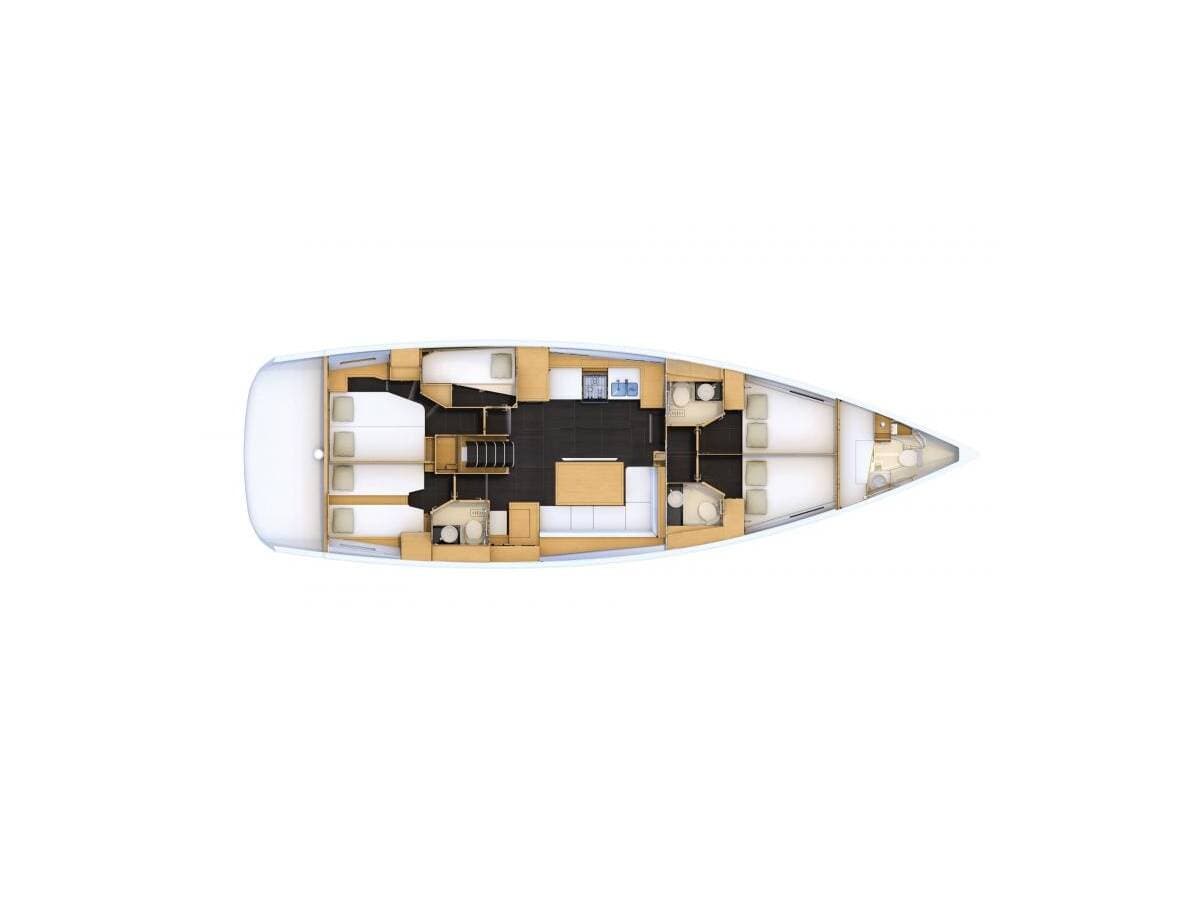 - DeckBimini topCockpit tableCockpit/stern, outside showerDinghyElectric anchor windlassHydraulic gangwayOutboard engineSprayhoodSwimming ladder