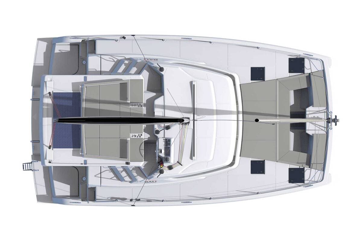 - DeckBathing platformBimini topCockpit tableCockpit/stern, outside showerDinghySprayhood