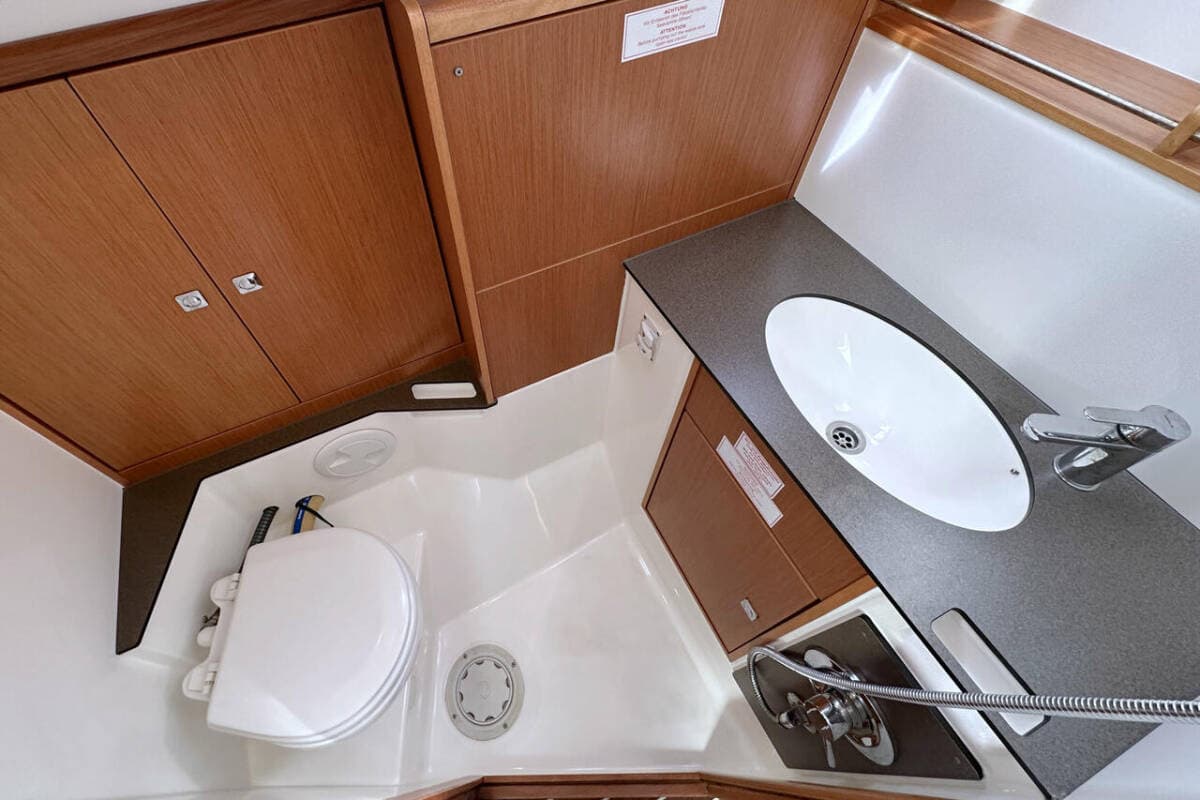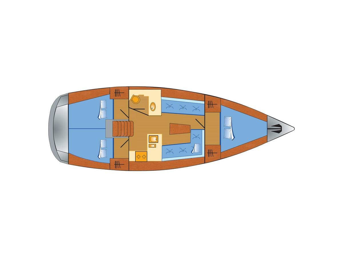 - DeckAnchorBilge pump - MechanicBlack ballBoat hookBosun's chair (Safe seat) (boatswain's chair)Cockpit tableCockpit/stern, outside showerDeck brushElectric anchor windlassFendersMooring ropes Spotlight / HeadlightsSprayhood