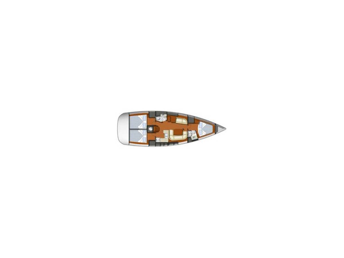 - DeckBimini top Cockpit tableCockpit/stern, outside showerDinghyElectric anchor windlassOutboard engineSprayhood Swimming ladder