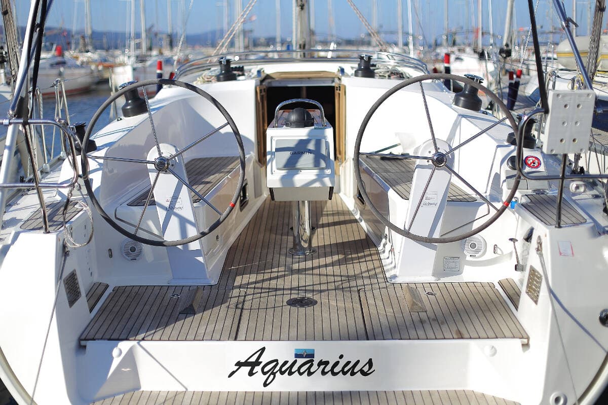 - DeckAnchor lineBathing platformBimini topBlack ballBlack conusBoat hookBosun's chair (Safe seat) (boatswain's chair)Canister for water Cockpit table with lightCockpit/stern, outside showerDinghyDinghy (byboat) pumpElectric anchor windlassFendersGangwayHawserImpeller, V-belt, oilfilterJerry cans for diesel Main anchor Mooring ropes Plastic bucketRepair box for dinghyRound/globular fenderSpare anchor (Reserve, Auxiliary anchor)Spotlight / HeadlightsSprayhoodSpring line Teak cockpitWater hose