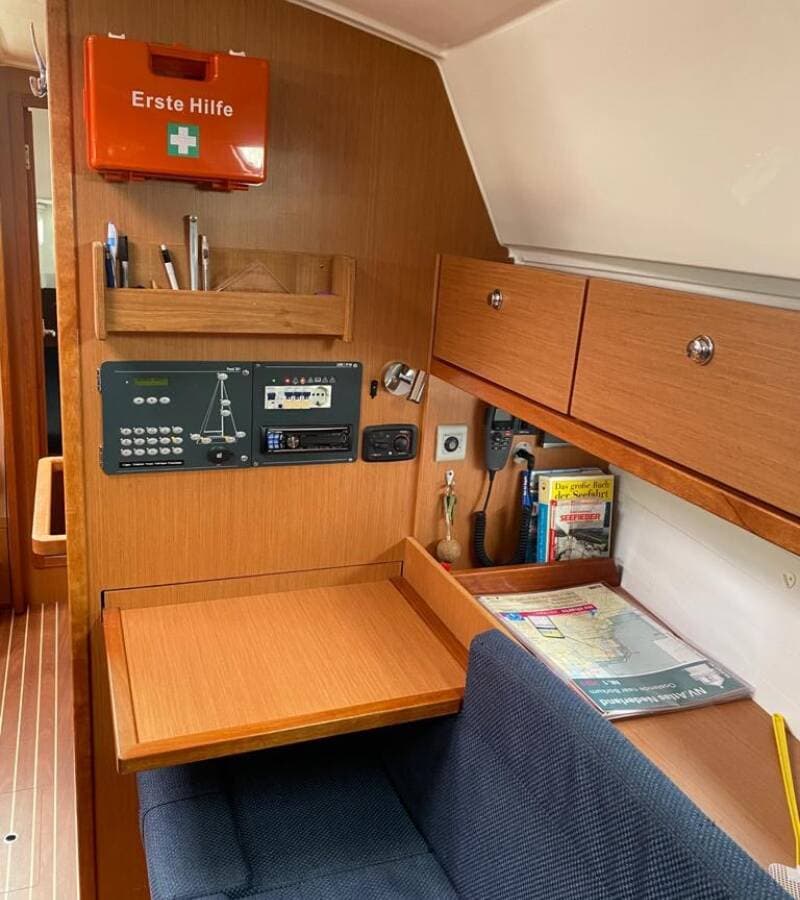 - NavigationAIS Autopilot Bow thrusterGPS chart plotterGPS chart plotter - cockpit Hand bearing compassHarbour guidesLogge/Lot/Speed/WindNavigation (Nautical) charts and nautical guide Navigation setParallel rulerRadar reflectorScreenSpyglass with bearing compass Tridata Windex