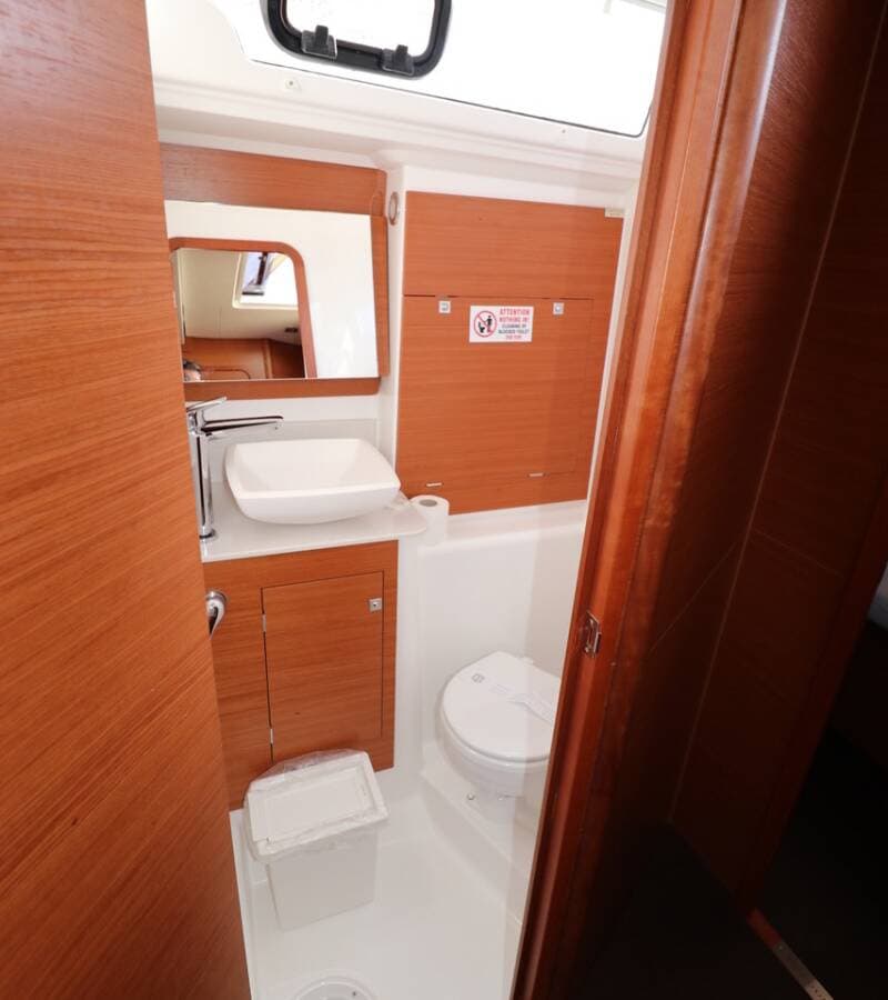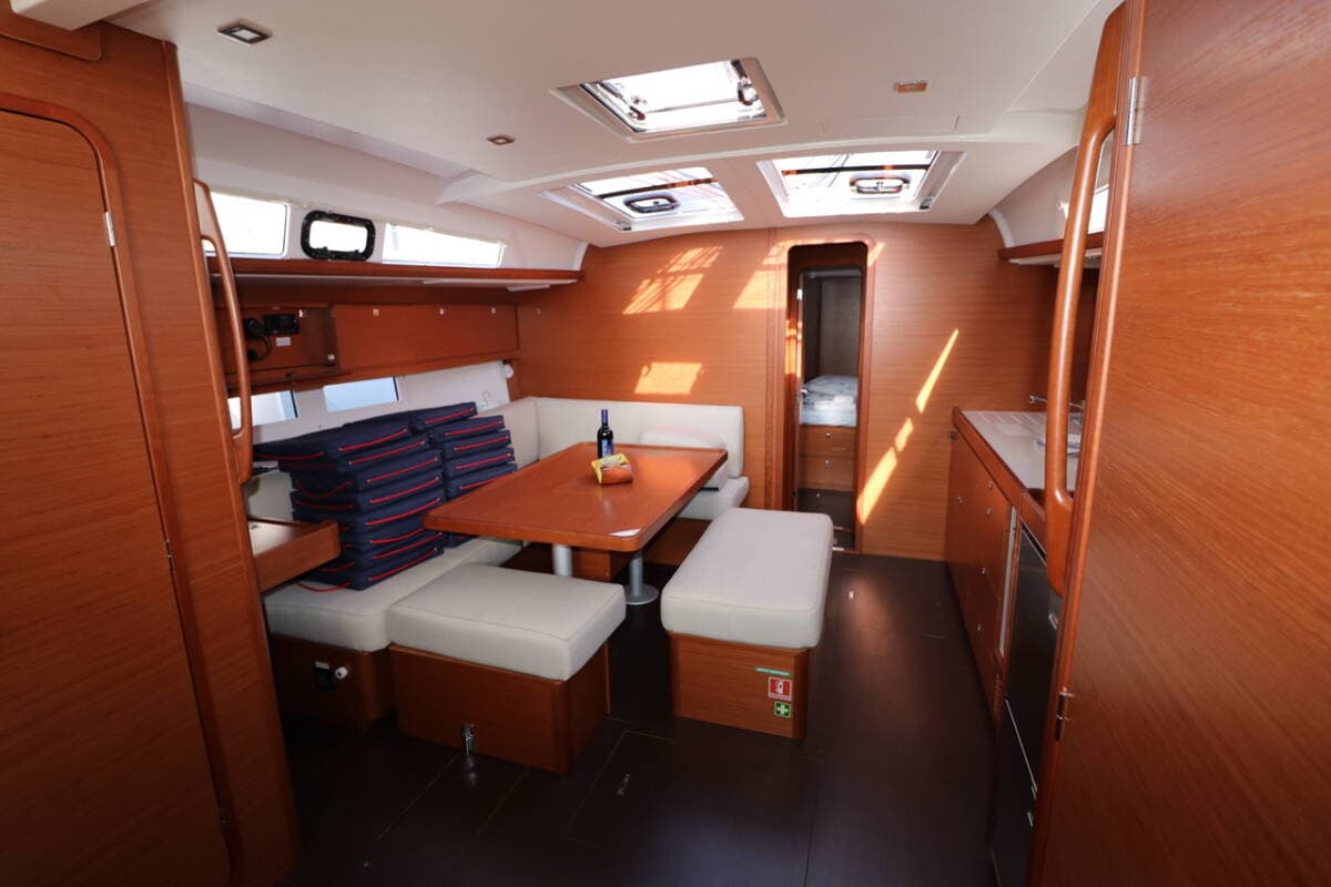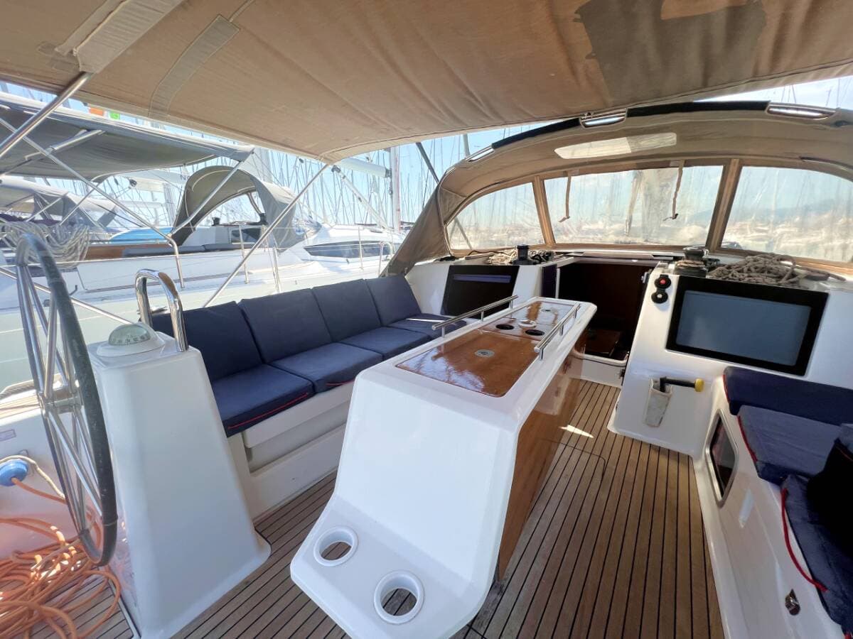 - DeckBathing platformBimini topBosun's chair (Safe seat) (boatswain's chair)Cockpit fridgeCockpit grillCockpit tableCockpit/stern, outside showerDeck brushDinghyElectric anchor windlassFendersGangwayGasoline Main anchor Mooring ropes Outboard engine Plastic bucketSpare anchor (Reserve, Auxiliary anchor)SprayhoodWater hoseWinch handles