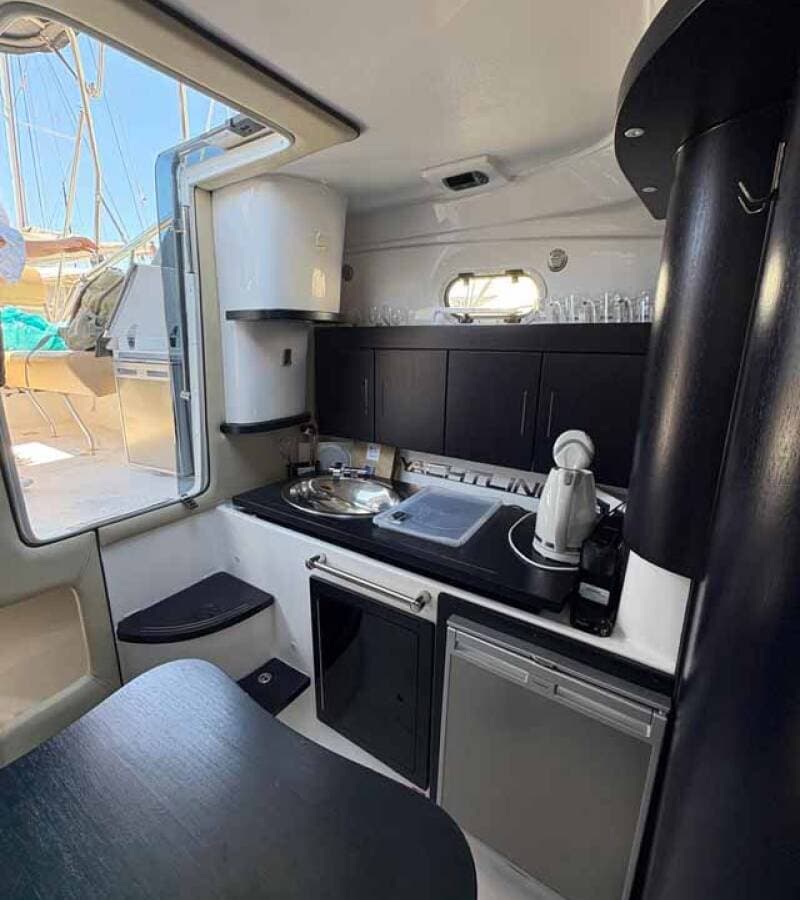 - GalleyHot plate Hot waterKitchen utensils (Galley equipment, cutlery)Refrigerator Stove