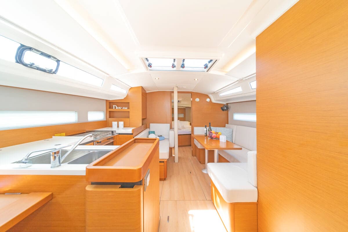 - DeckBathing platformBimini topDinghy with outboard engineGangwaySprayhood