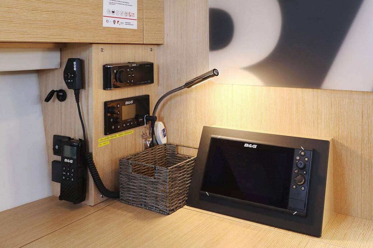 - NavigationAutopilot Bow thrusterGPS chart plotter - cockpit Harbour guidesLogge/Lot/Speed/Wind Navigation (Nautical) charts and nautical guideNavigation setRadar reflectorSpyglass with bearing compass
