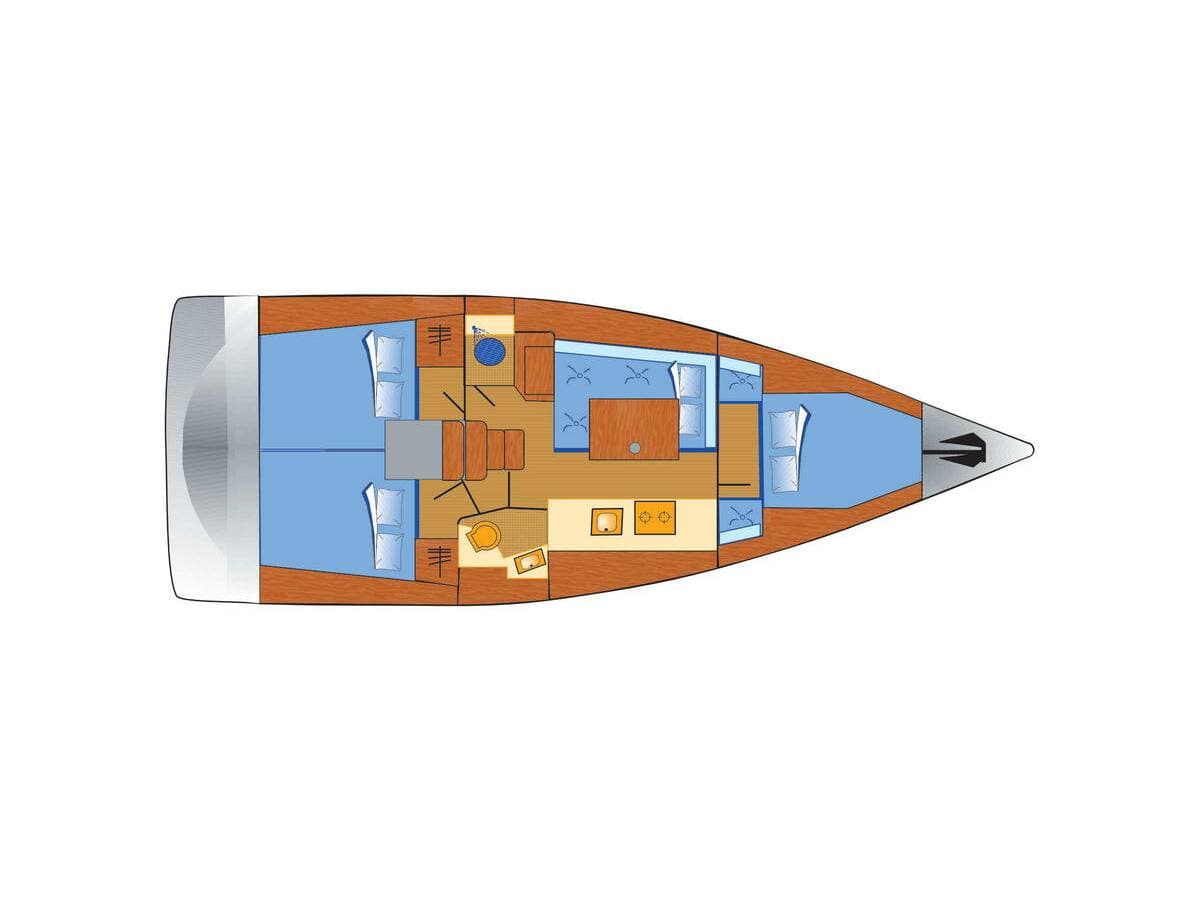 - DeckAnchorBilge pump - MechanicBlack ballBoat hookBosun's chair (Safe seat) (boatswain's chair)Cockpit tableCockpit/stern, outside showerDeck brushElectric anchor windlassFendersMooring ropes Spotlight / HeadlightsSprayhood