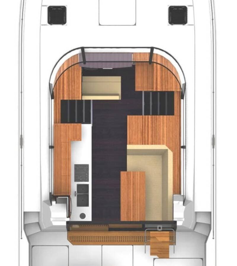 - DeckAnchor lineAnchor swivelBathing platform Bimini topBlack ballBlack conusBoat hookCanister for water Cockpit table with lightCockpit/stern, outside showerDinghyDinghy (byboat) pumpElectric anchor windlassFendersGangway Hawser Impeller, V-belt, oilfilterJerry cans for diesel Main anchorMooring ropes Plastic bucketRepair box for dinghyRound/globular fenderSpare anchor (Reserve, Auxiliary anchor)Spotlight / HeadlightsSpring line Teak deckWater hose