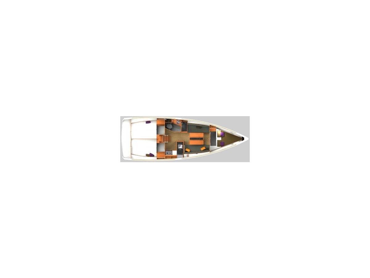 - DeckBimini topCockpit tableCockpit/stern, outside showerDinghyElectric anchor windlassOutboard engineSprayhoodSwimming ladderTeak cockpit