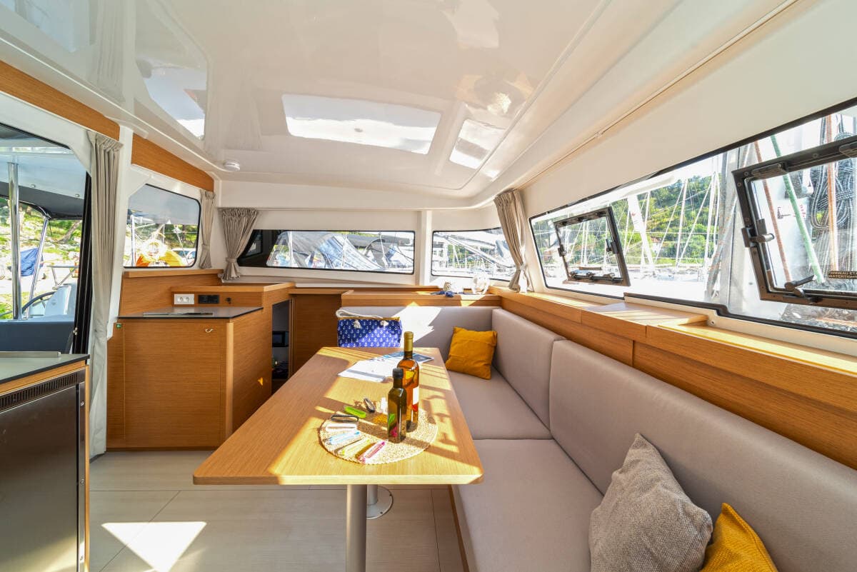 - DeckAnchor chain counterBimini topBlack ballBlack conusBoat hookBosun's chair (Safe seat) (boatswain's chair)Cockpit tableCockpit/stern, outside showerDinghyDinghy (byboat) pumpDinghy with outboard engineElectric anchor windlassFendersGangwayMooring ropes Outboard engineSpare anchor (Reserve, Auxiliary anchor)SprayhoodSwimming ladderWater hoseWinch handles
