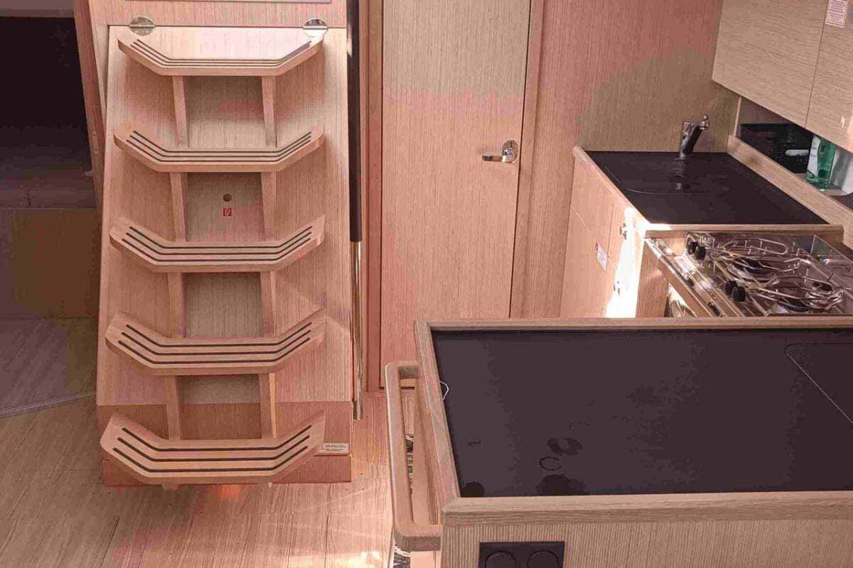 - GalleyCoffee machine Gas bottlesHot waterKitchen utensils (Galley equipment, cutlery)Refrigerator