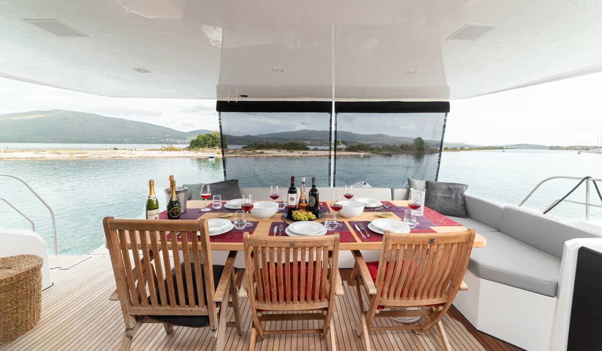 - DeckAnchor Bathing platform Dinghy Electric anchor windlassGangwayGrill/Barbecue/PlanchaOutboard engine Teak cockpitTeak deck