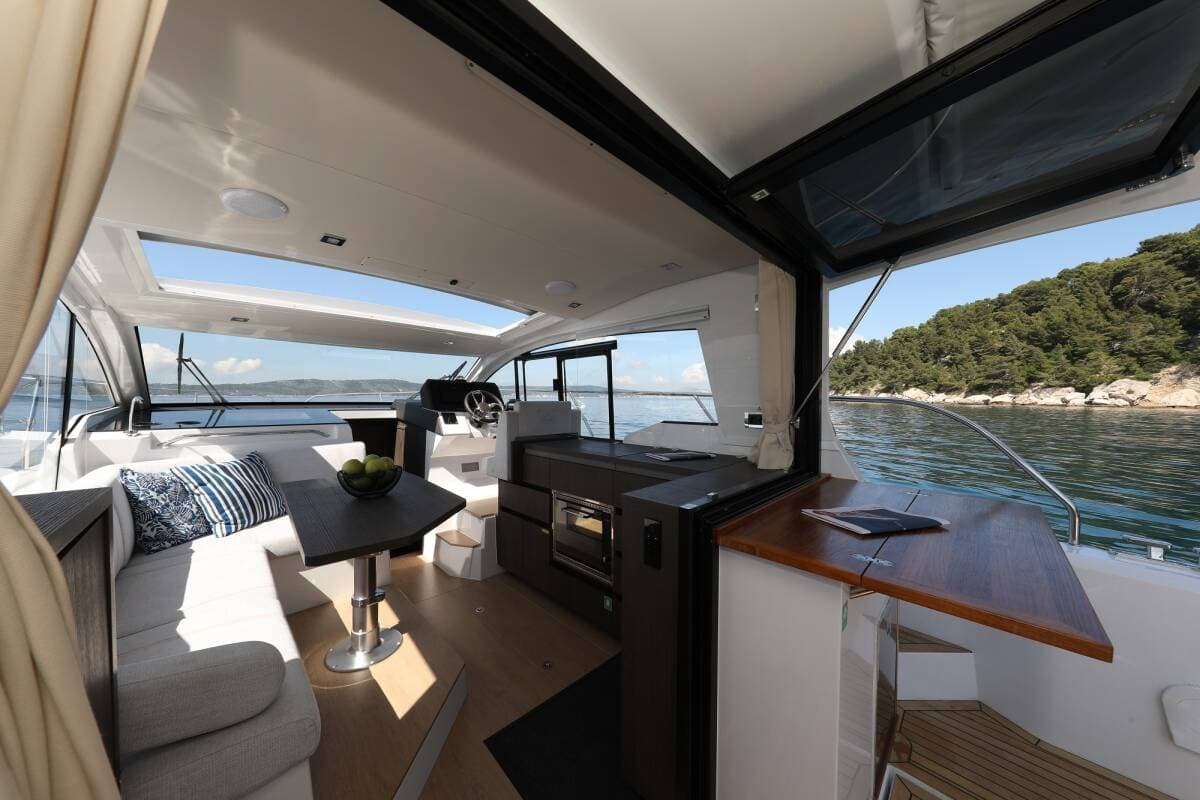 - DeckCockpit/stern, outside showerDinghyElectric anchor windlassSun awning (aft)Teak cockpit