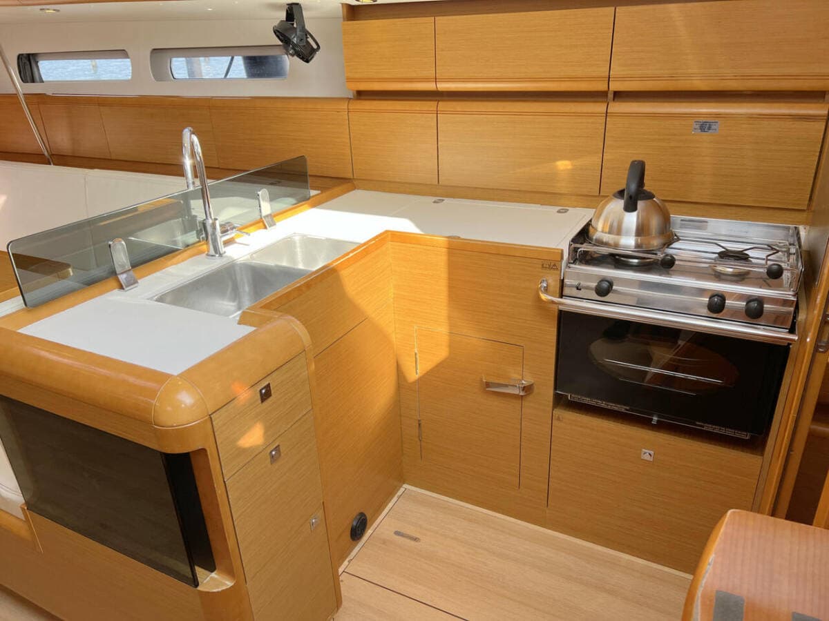 - GalleyDishesElectrical kettleHot waterKitchen utensils (Galley equipment, cutlery)OvenStove