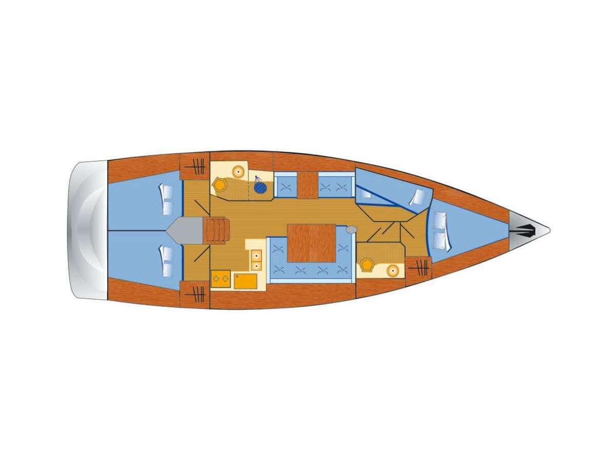 - DeckAnchorBilge pump - MechanicBlack ballBoat hookBosun's chair (Safe seat) (boatswain's chair)Cockpit tableCockpit/stern, outside showerDeck brushElectric anchor windlassFendersMooring ropes Spotlight / HeadlightsSprayhood