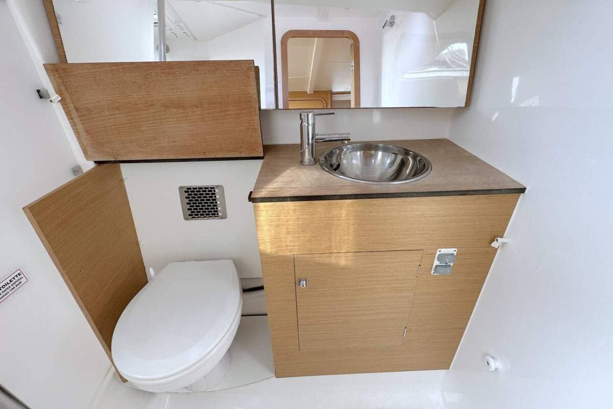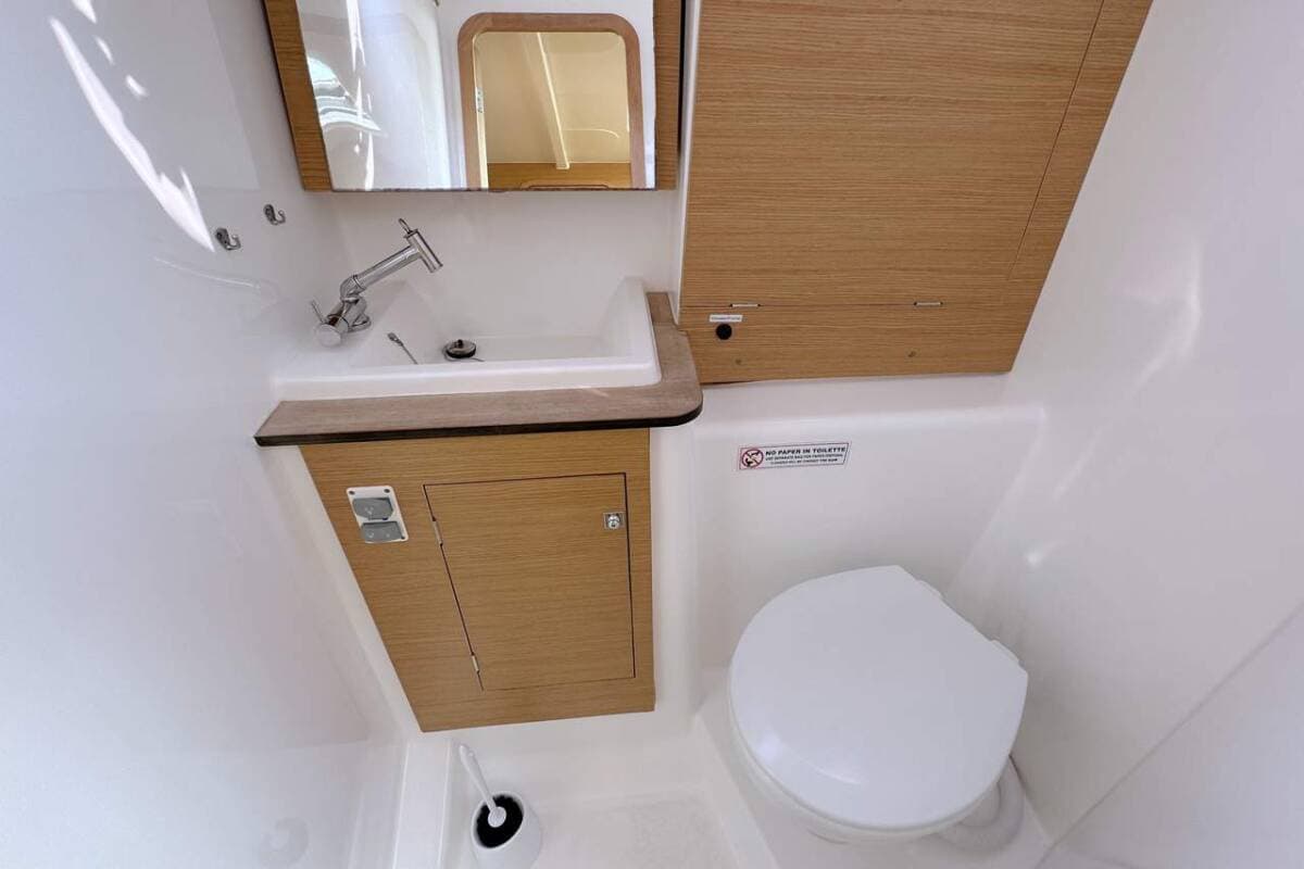 - DeckAnchor lightAnchor with chainBilge pump - MechanicBimini top Boat hookCockpit tableDeck brushElectric anchor windlassFenders Mooring ropes Plastic bucketSprayhood Teak cockpitTeak seats in cockpit