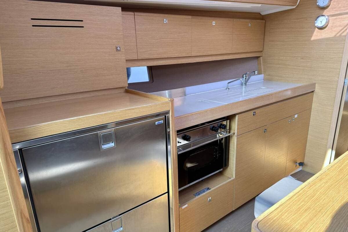 - GalleyCoffee pot Electrical kettleGas cookersHot waterIce boxKitchen utensils (Galley equipment, cutlery)Pressurized water systemSink