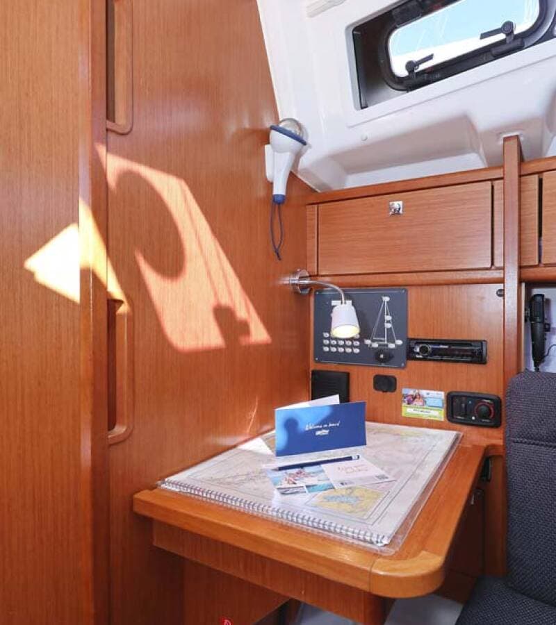 - NavigationAutopilotBow thrusterBretonplotterEchosounder/DepthsounderGPS chart plotterGPS chart plotter - cockpitHand bearing compassHarbour guidesLogge/Lot/Speed/WindNavigation (Nautical) charts and nautical guide Navigation setParallel rulerRadar reflectorSpyglass with bearing compassTridata