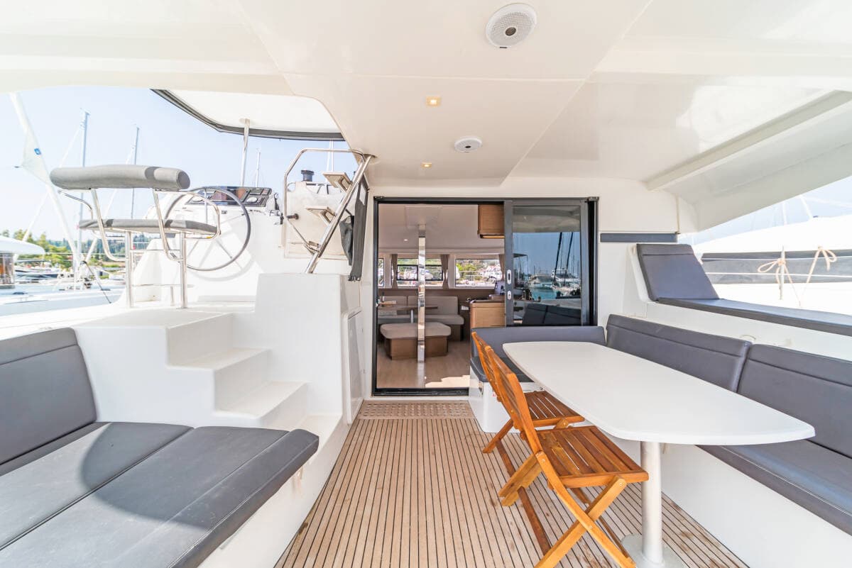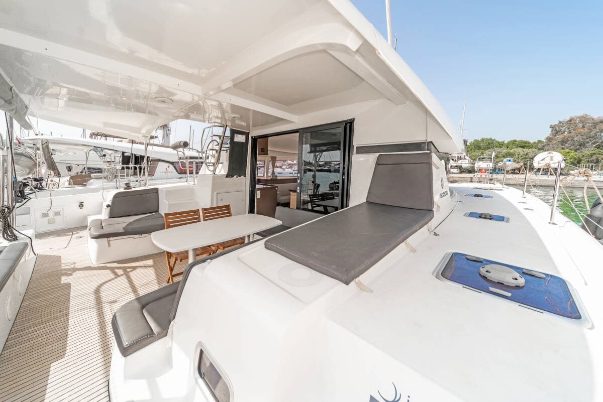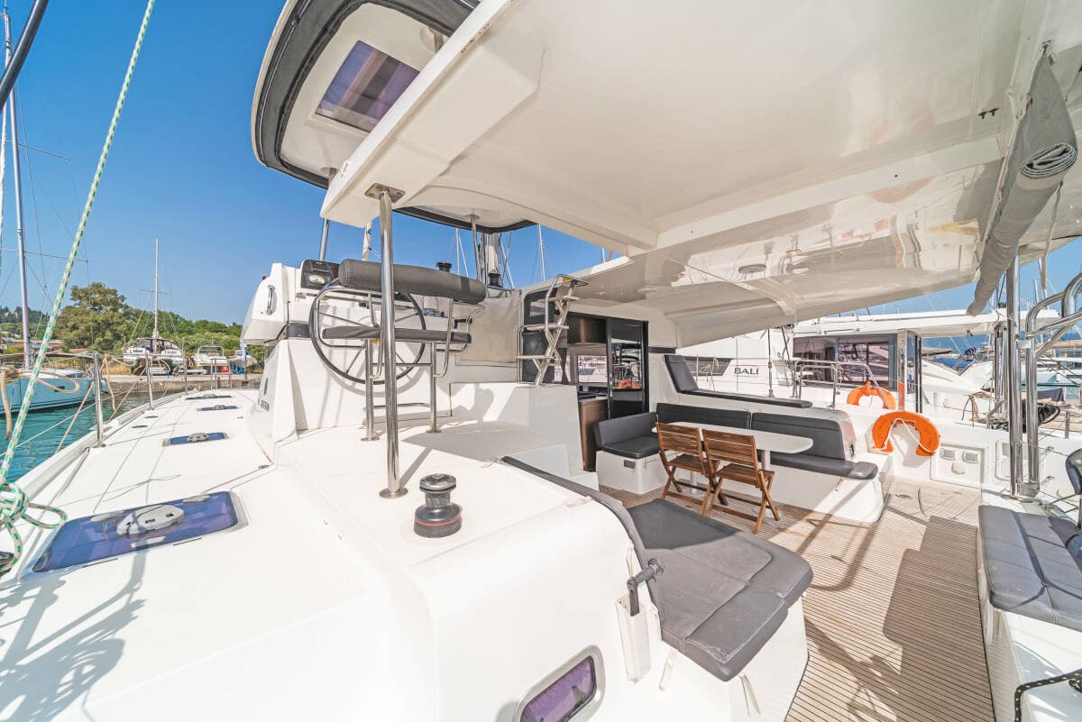 - DeckAnchor with chainBimini topBlack ballBoat hookCockpit tableDinghyDinghy with outboard engineElectric anchor windlassFendersGangwayOutboard engineSpare anchor (Reserve, Auxiliary anchor)SprayhoodSwimming ladderWater hoseWinch handles