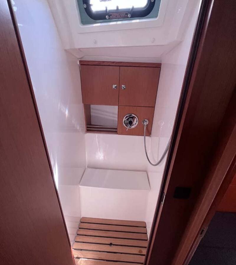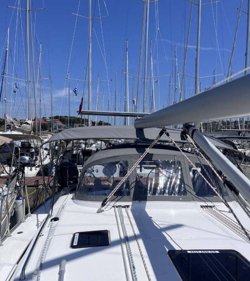 - DeckAnchor lineAnchor swivelBimini topBlack ballBlack conusBoat hookBosun's chair (Safe seat) (boatswain's chair)Canister for waterCockpit tableCockpit/stern, outside showerDinghyDinghy (byboat) pumpElectric anchor windlassFendersGangwayHawserImpeller, V-belt, oilfilterJerry cans for dieselMain anchor Mooring ropes Plastic bucketRepair box for dinghyRound/globular fenderSpare anchor (Reserve, Auxiliary anchor)Spotlight / HeadlightsSprayhoodSpring lineTeak cockpitWater hose