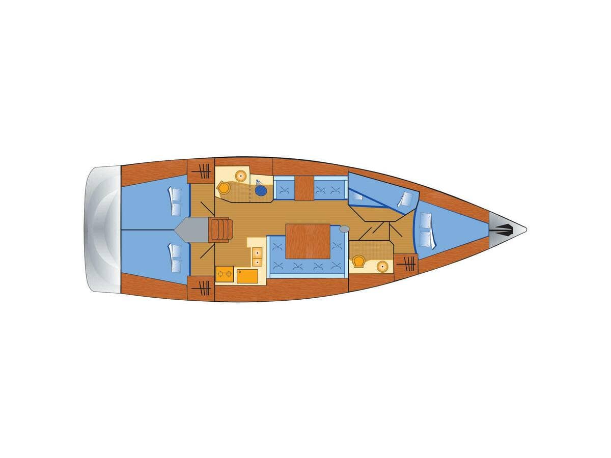 - DeckAnchorBilge pump - MechanicBlack ballBoat hookBosun's chair (Safe seat) (boatswain's chair)Cockpit tableCockpit/stern, outside showerDeck brushElectric anchor windlassFendersMooring ropes Spotlight / HeadlightsSprayhood
