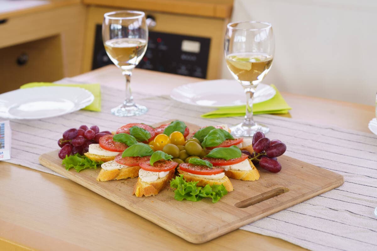 - GalleyFreezerGas bottlesHot waterKitchen utensils (Galley equipment, cutlery)Refrigerator