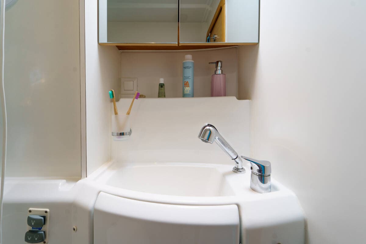 - Yacht electricsBattery charger HeatingInverter Shore connection 220 VSolar panels USB socketsWatermaker - desalinator