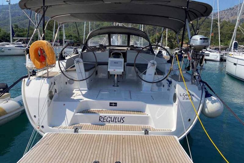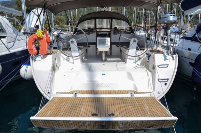 - DeckAnchor lineAnchor swivelBimini topBoat hookBosun's chair (Safe seat) (boatswain's chair)Canister for waterCockpit table with lightCockpit/stern, outside showerDinghyDinghy (byboat) pumpElectric anchor windlassFendersGangwayImpeller, V-belt, oilfilterJerry cans for dieselMain anchor Mooring ropes Plastic bucketRepair box for dinghyRound/globular fenderSpare anchor (Reserve, Auxiliary anchor)Spotlight / HeadlightsSprayhoodTeak cockpitWater hose