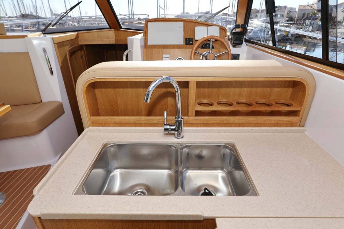- DeckAnchor lineAnchor swivelBimini topBlack ballBlack conusBoat hookCanister for waterChairsCockpit full tentCockpit tableCockpit/stern, outside showerDinghyDinghy (byboat) pumpElectric anchor windlassFendersGangway Impeller, V-belt, oilfilterJerry cans for dieselMain anchorMooring ropesPlastic bucketRepair box for dinghyRound/globular fenderSpare anchor (Reserve, Auxiliary anchor)Spotlight / HeadlightsSpring lineTeak cockpitWater hose
