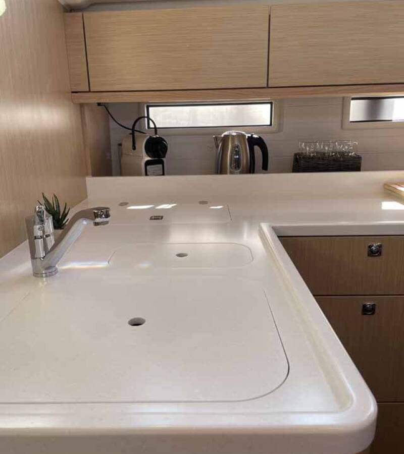 - GalleyCoffee machine Dishwasher Gas bottlesHot waterKitchen utensils (Galley equipment, cutlery)Refrigerator
