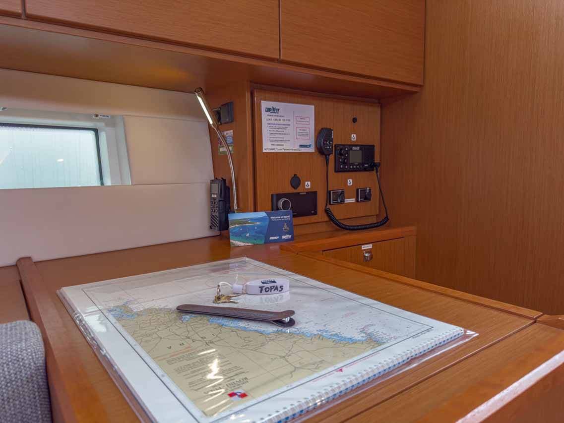 - NavigationAutopilot Bow thrusterGPS chart plotterGPS chart plotter - cockpit Harbour guidesLogge/Lot/Speed/Wind Navigation (Nautical) charts and nautical guide Navigation setRadar reflectorSpyglass with bearing compass
