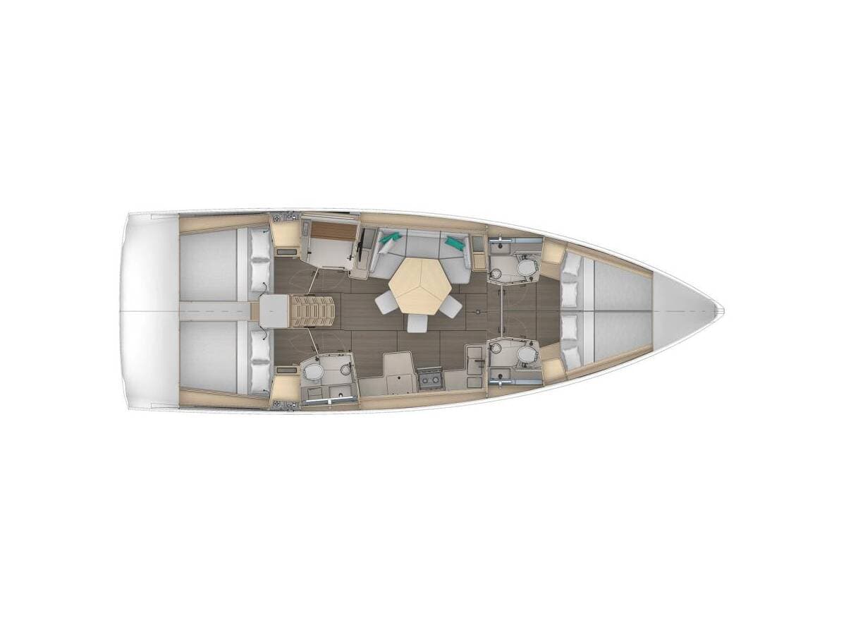 - DeckBimini topCockpit fridgeDinghy with outboard engine Gangway Grill/Barbecue/PlanchaSprayhoodTeak cockpit