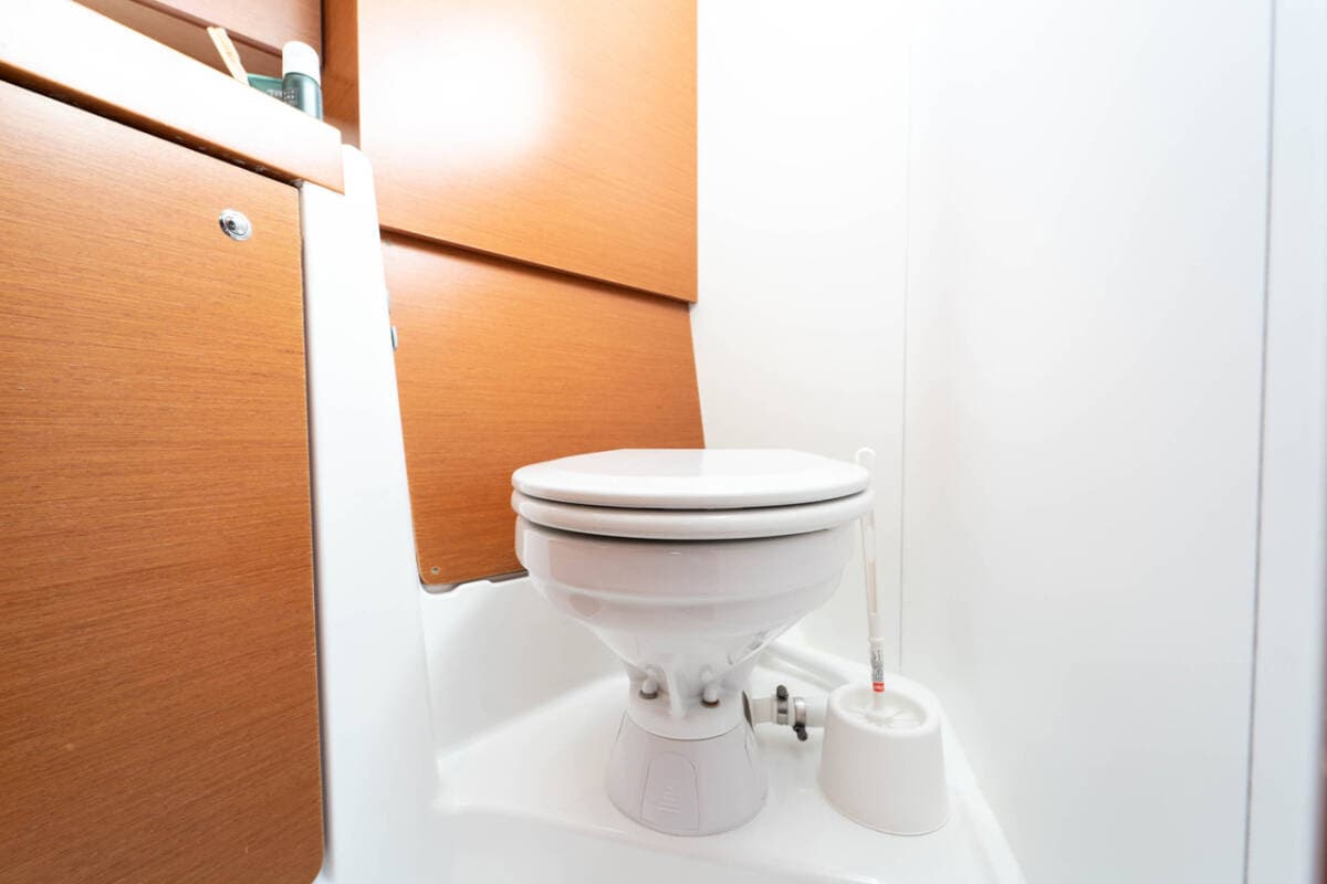 - DeckAnchor lineBathing platformBimini top Boat hookBosun's chair (Safe seat) (boatswain's chair)Canister for water Cockpit table with lightCockpit/stern, outside showerDinghyDinghy (byboat) pumpElectric anchor windlassFendersGangway Jerry cans for diesel Main anchorMooring ropes Plastic bucketRepair box for dinghyRound/globular fenderSpare anchor (Reserve, Auxiliary anchor)Spotlight / Headlights Sprayhood Teak cockpitWater hose