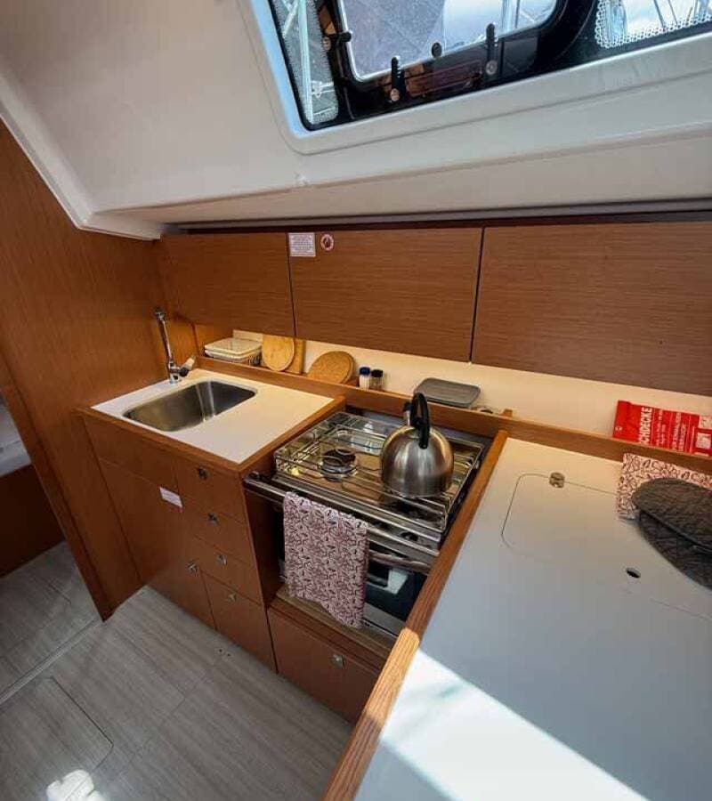 - GalleyGas bottlesHot waterKitchen utensils (Galley equipment, cutlery)Refrigerator