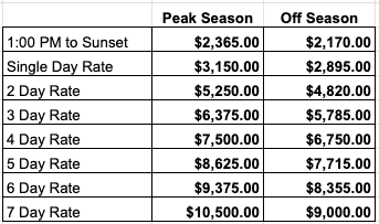 As listed by the charter operator