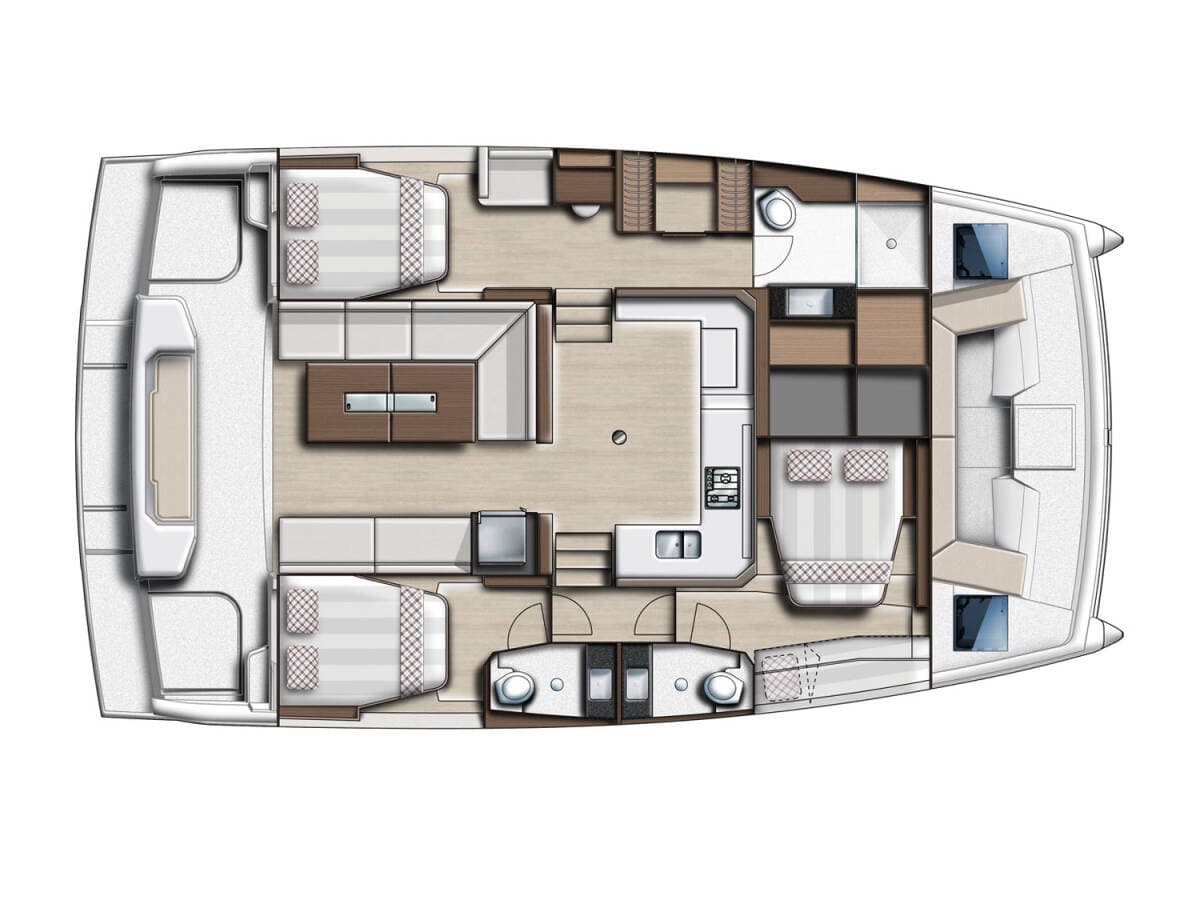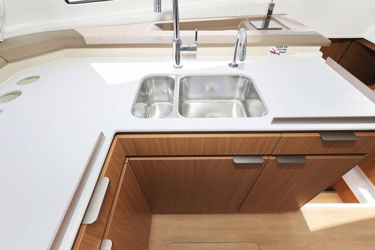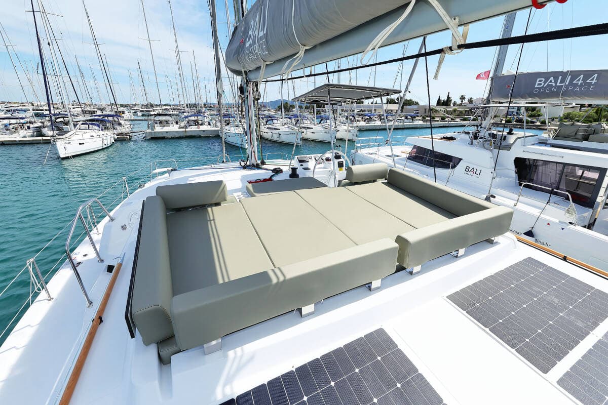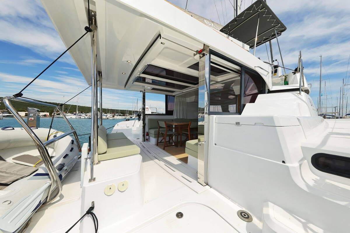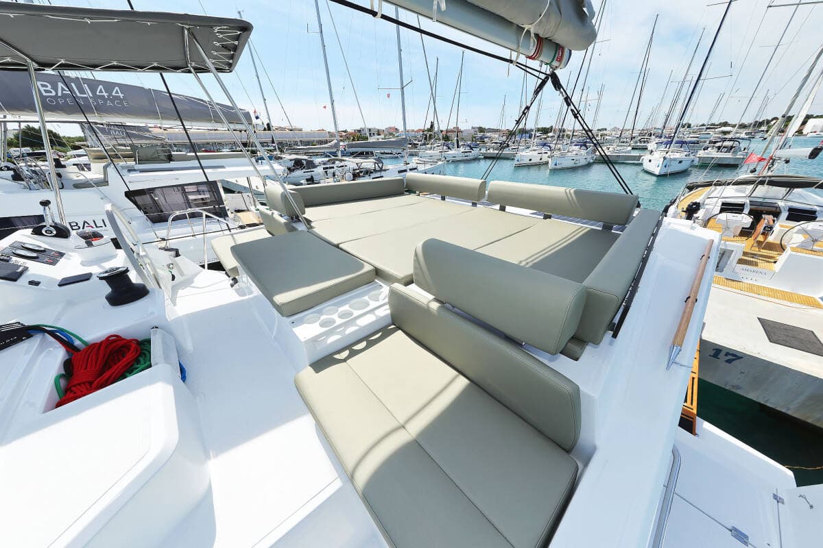 - DeckBathing platformBimini topCockpit tableCockpit/stern, outside showerDinghyFly sunbathing area Forward cockpit