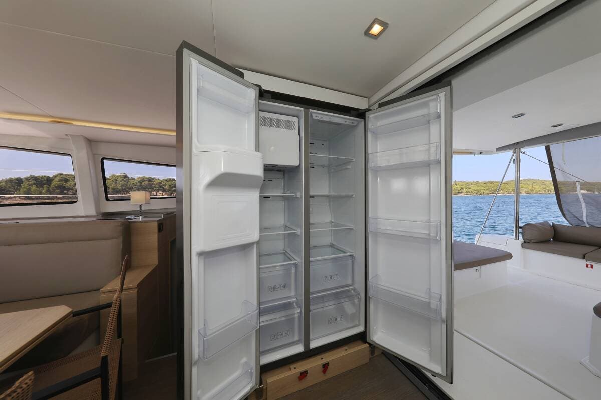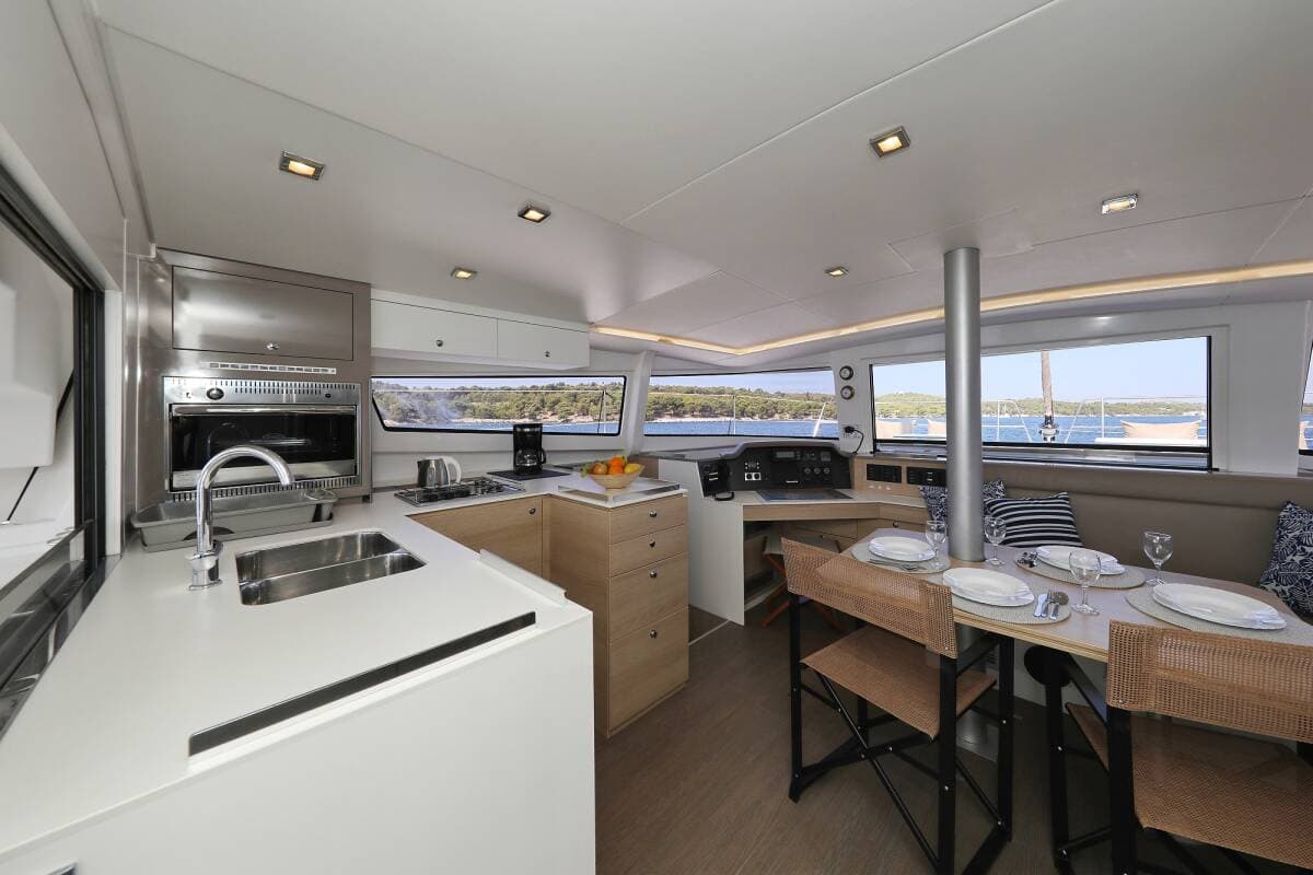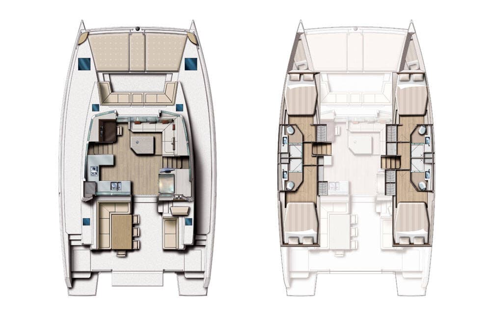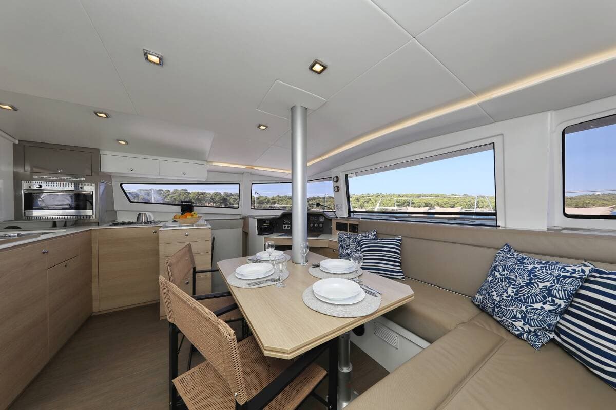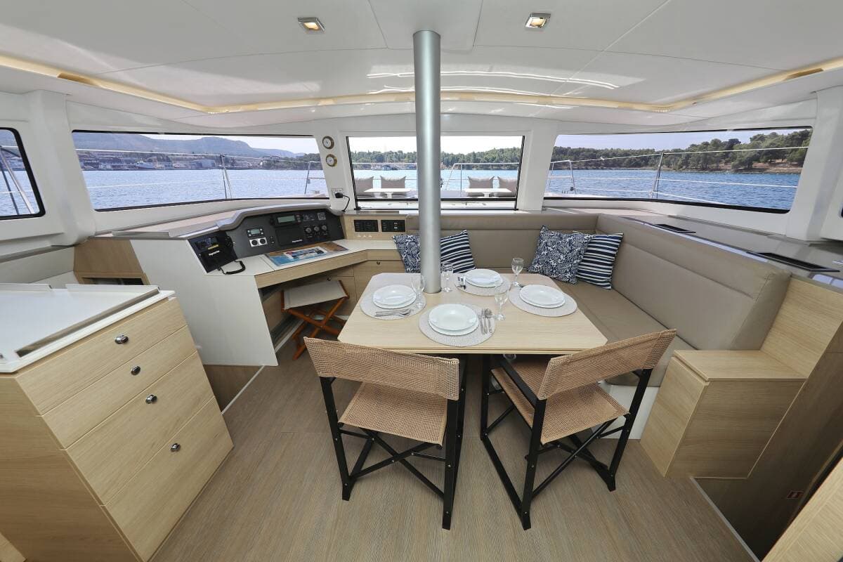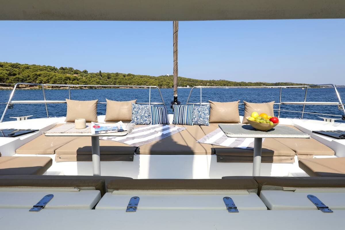 - DeckAnchorAnchor with chainBimini topCockpit full tentCockpit/stern, outside showerDinghyElectric anchor windlassFloating ropeGrill/Barbecue/PlanchaMain anchorSpare anchor (Reserve, Auxiliary anchor)