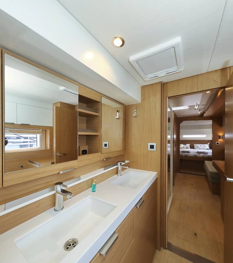 - DeckAnchor with chainBathing platformBimini topCockpit tableCockpit/stern, outside showerDinghyElectric anchor windlassGrill/Barbecue/PlanchaSwimming ladder