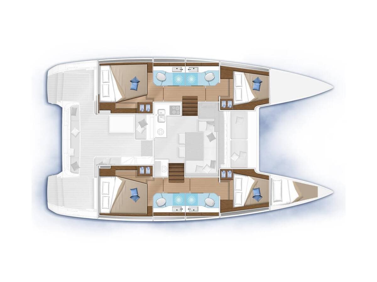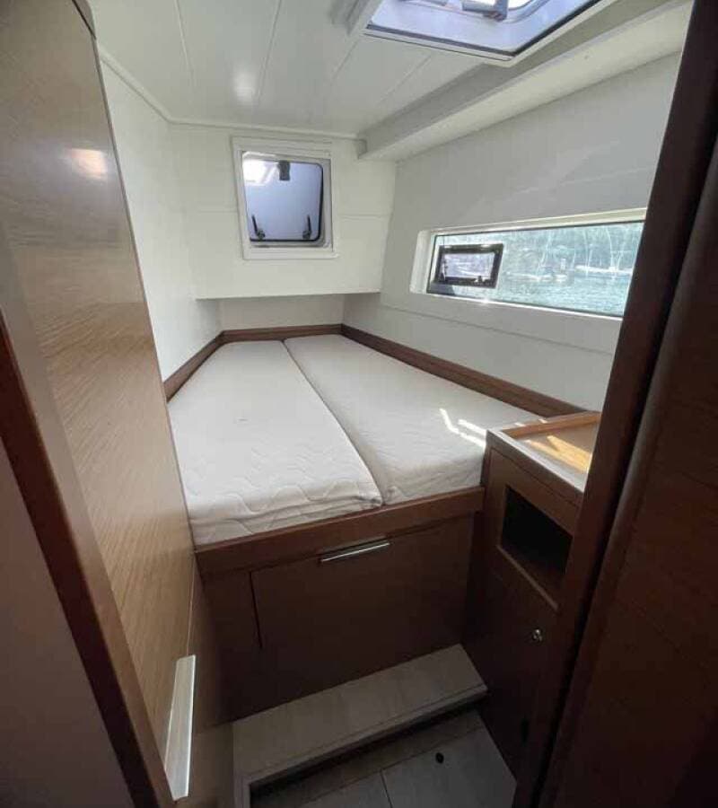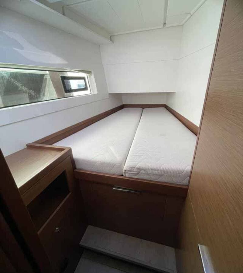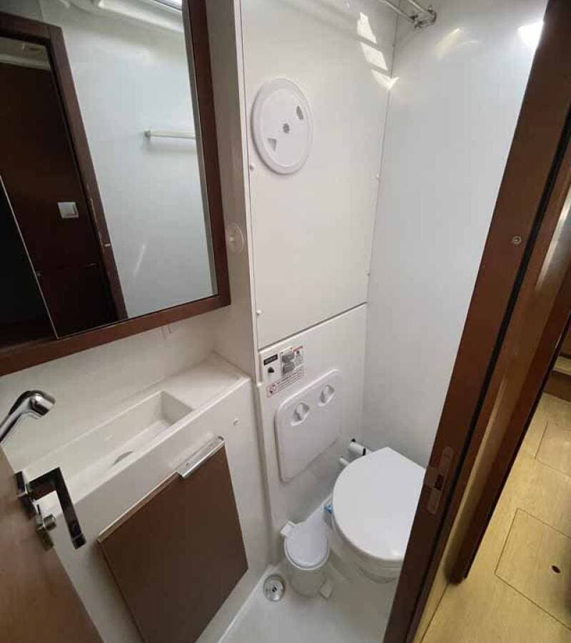 - DeckAnchor winch remote controlBimini topCockpit tableCockpit/stern, outside showerDavitDinghyElectric anchor windlassTeak cockpit
