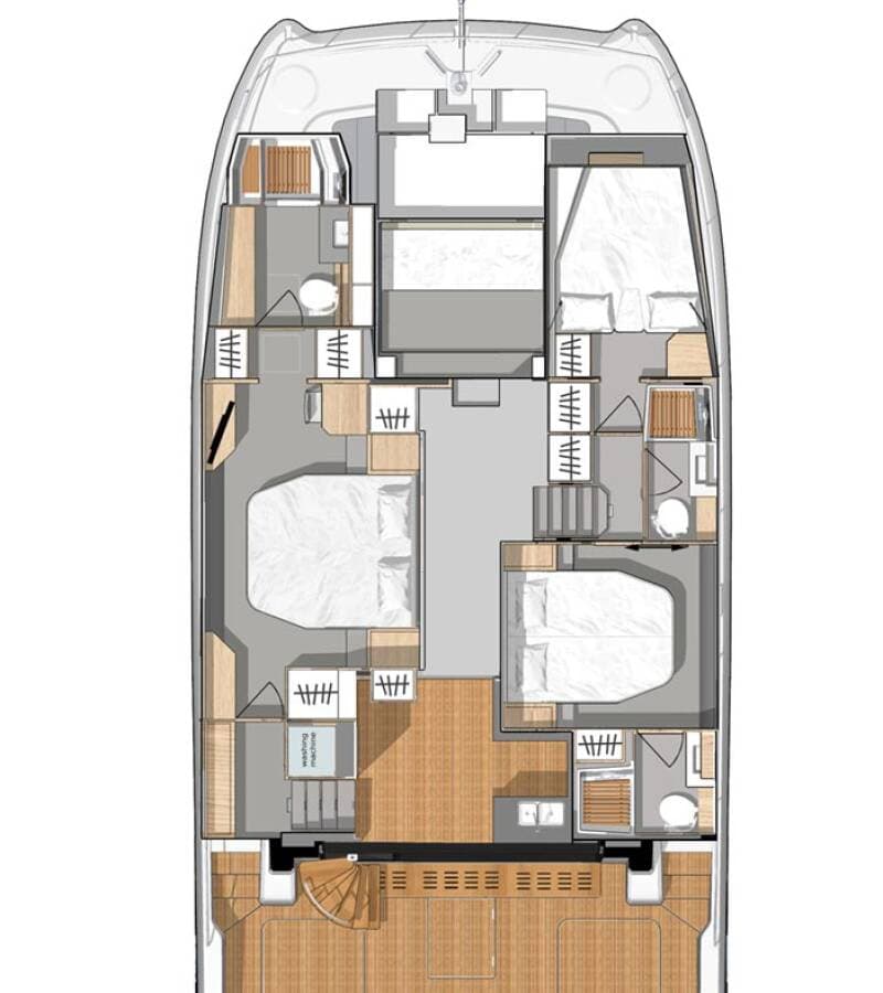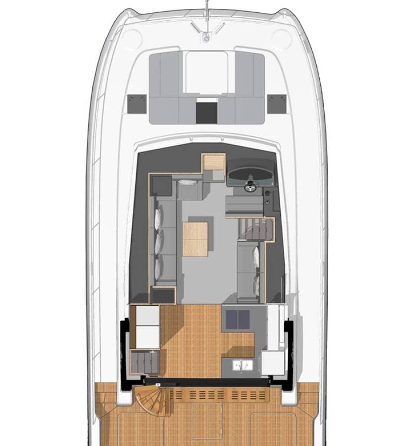 - DeckAnchor lineAnchor swivelBlack ballBlack conusChairsCockpit full tentCockpit grill Cockpit table with lightCockpit/stern, outside showerDinghy (byboat) pumpDinghy with outboard engine Electric anchor windlassFendersFridge on flybridgeGangwayHawserHydraulic lifting swimming platformImpeller, V-belt, oilfilterMain anchorMooring ropes Plastic bucketRemote control for anchor winch with chain counter at helmRepair box for dinghyRound/globular fenderSpare anchor (Reserve, Auxiliary anchor)Spotlight / HeadlightsSpring lineTeak cockpitTeak deckWater hose