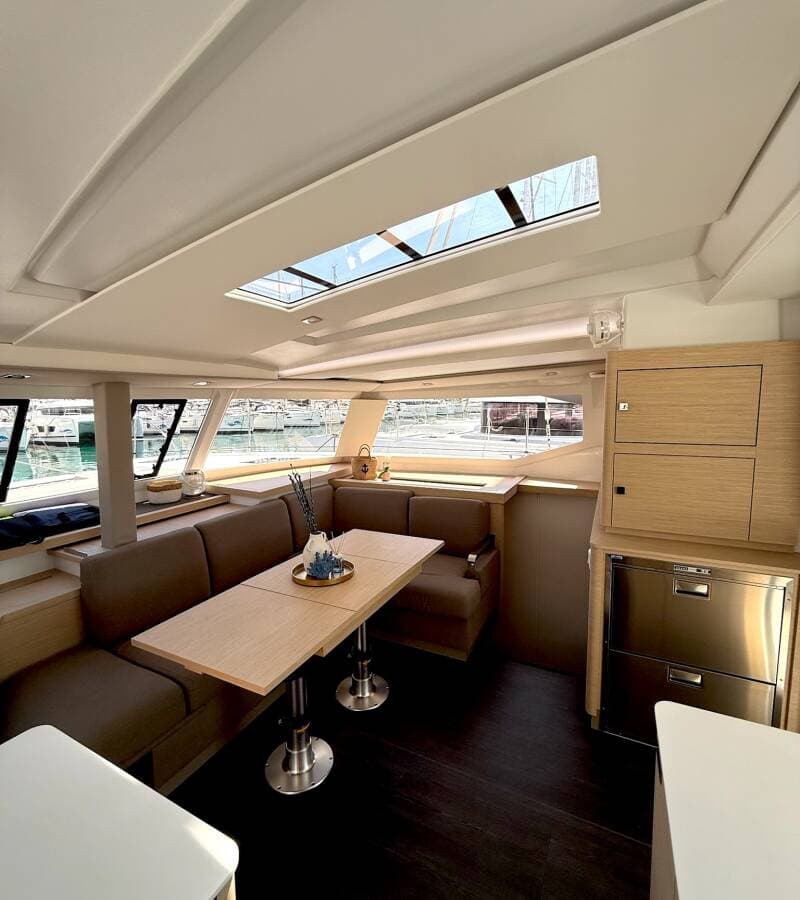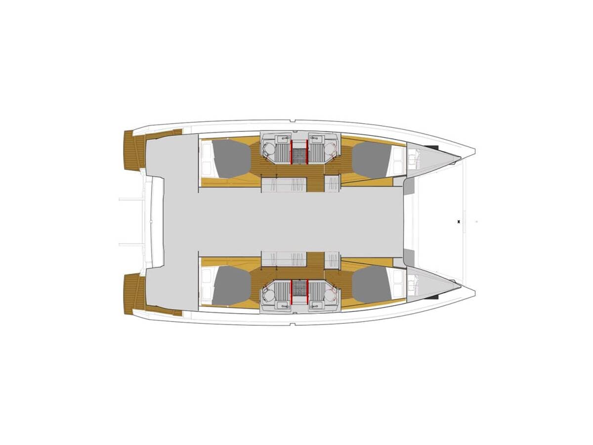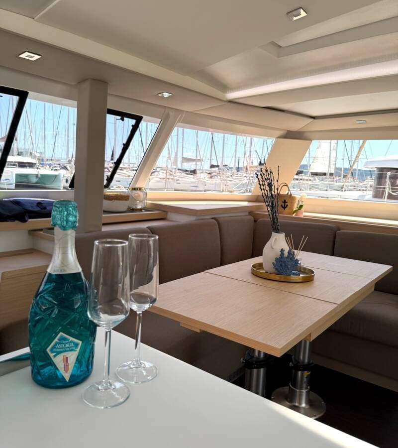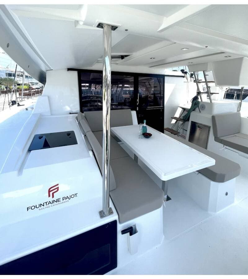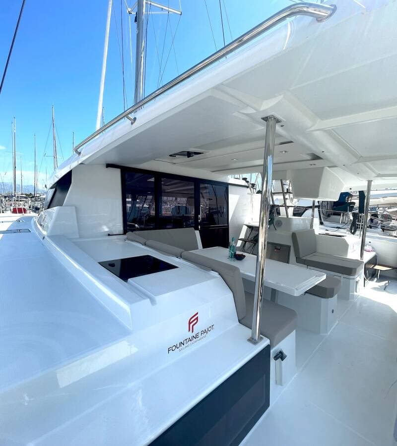 - DeckAnchor with chainBimini top Cockpit fridgeCockpit tableCockpit/stern, outside showerDinghyElectric anchor windlass FendersGangwayHot water in cockpitMooring ropesOutboard engine Spare anchor (Reserve, Auxiliary anchor)Swimming ladder