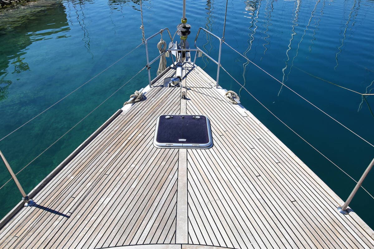 - DeckAnchor lineAnchor swivelBimini top Black ballBlack conusBoat hookBosun's chair (Safe seat) (boatswain's chair)Canister for waterCockpit table with lightCockpit/stern, outside showerDinghyDinghy (byboat) pumpElectric anchor windlassFendersGangway HawserImpeller Jerry cans for dieselMain anchor Mooring ropes Plastic bucketRemote control for anchor winch with chain counter at helmRepair box for dinghyRound/globular fenderSpare anchor (Reserve, Auxiliary anchor)Spotlight / HeadlightsSprayhood Spring lineTeak cockpitTeak deck Water hose